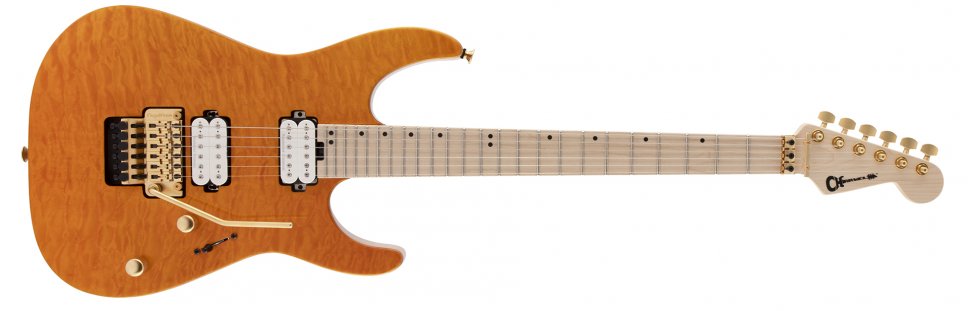 La Pro-Mod DK24 HH FR M è un modello particolare, che fa la voce grossa grazie al suo corpo in mogano rivestito da uno stupendo top in acero quilted, con finitura Dark Amber.