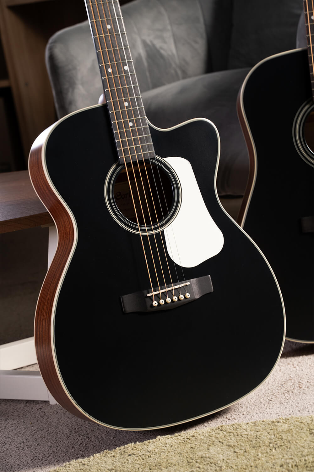 Queste chitarre presentano un design ricercato con top in cedro massello e una finitura satinata nera che aggiunge un tocco di eleganza e modernità.
