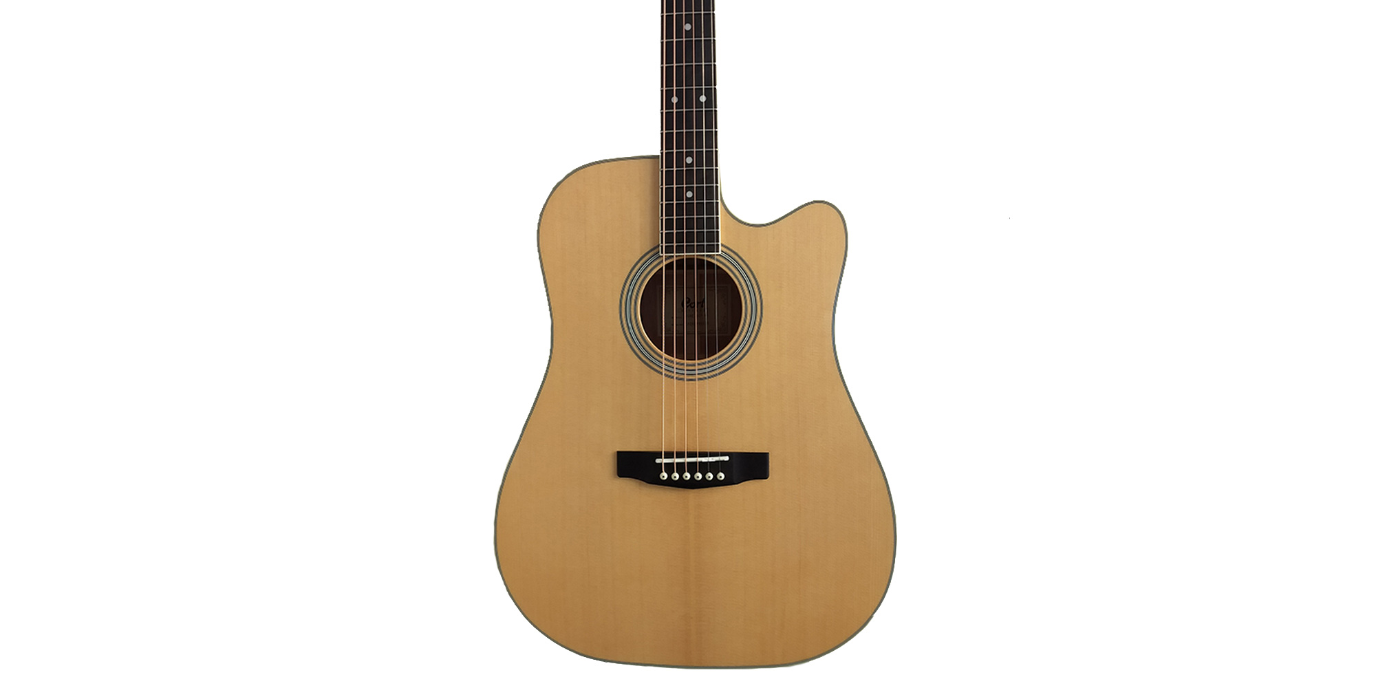- PURE-DCF NS: Dreadnought Cutaway, top in abete Sitka massello, fondo e fasce in mogano massello.