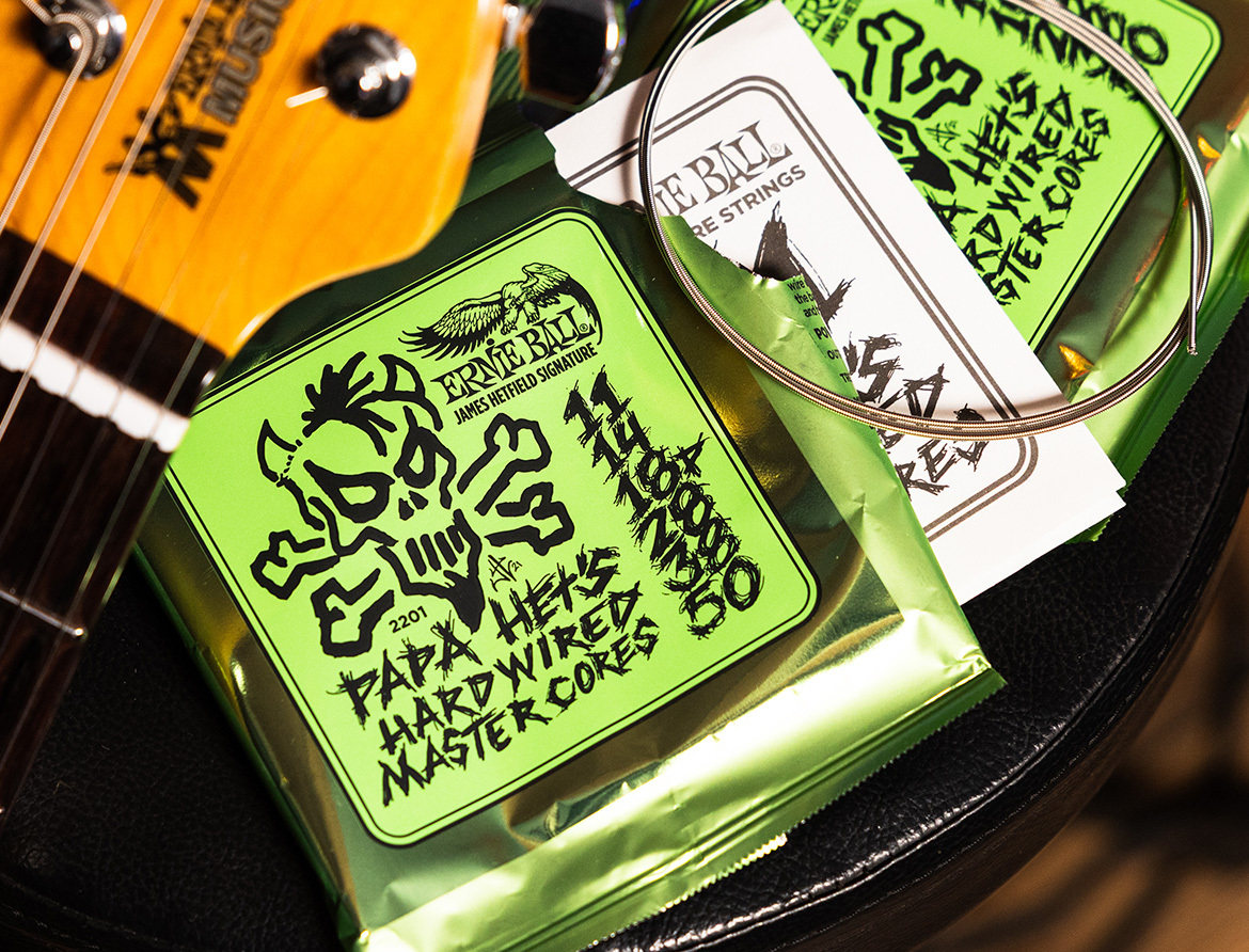 Ci sono voluti oltre dieci anni di sviluppo condiviso tra Ernie Ball e James Hetfield per mettere a punto queste corde. Ora arriva una novità, a livello di distribuzione, che le rende molto più accessibili nella pratica quotidiana: le Papa Het’s Hardwired Master Cores sono disponibili anche in confezioni singole.