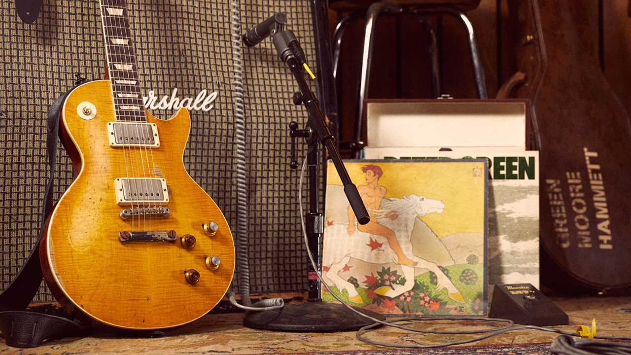 La chitarra è chiamata “Greeny” proprio perché è stata di proprietà di Peter Green, il celebre chitarrista dei Fleetwood Mac (la versione inglese della band, più sanguigna e rock-blues). Venne poi acquistata da Gary Moore, che ha inciso con questa signora a 6 corde altre pagine di grande storia musicale (a tutto volume!).