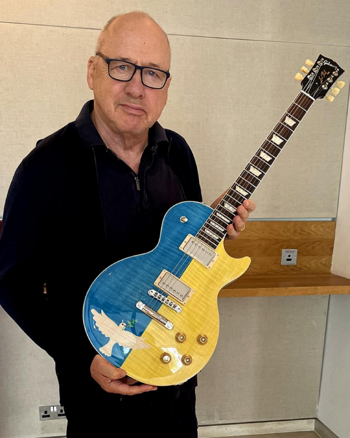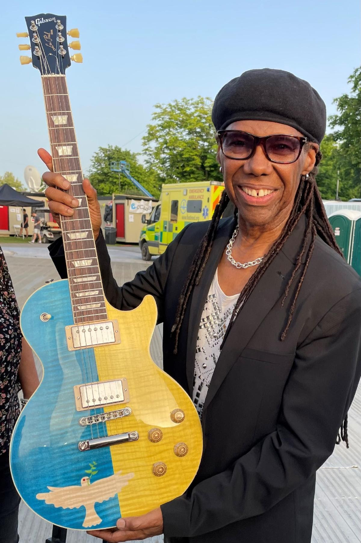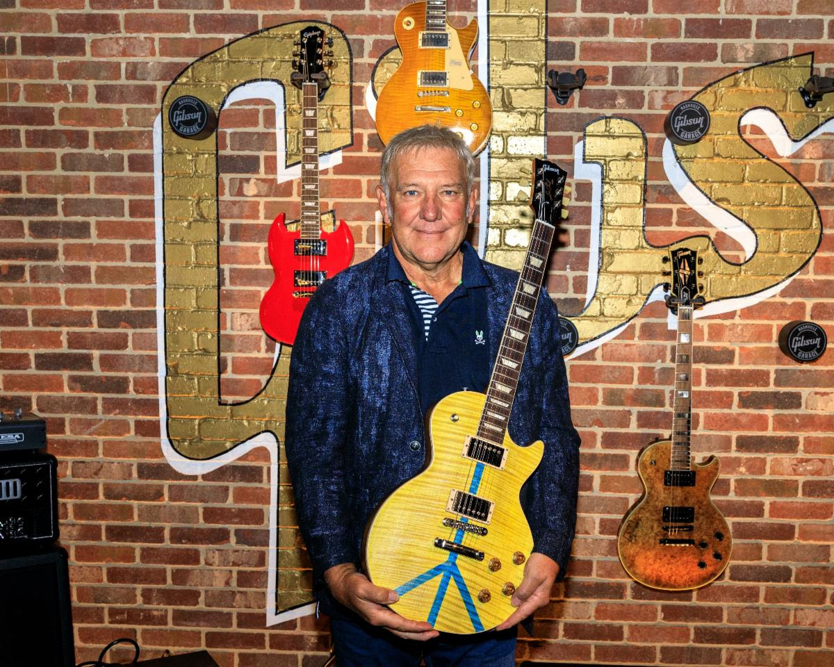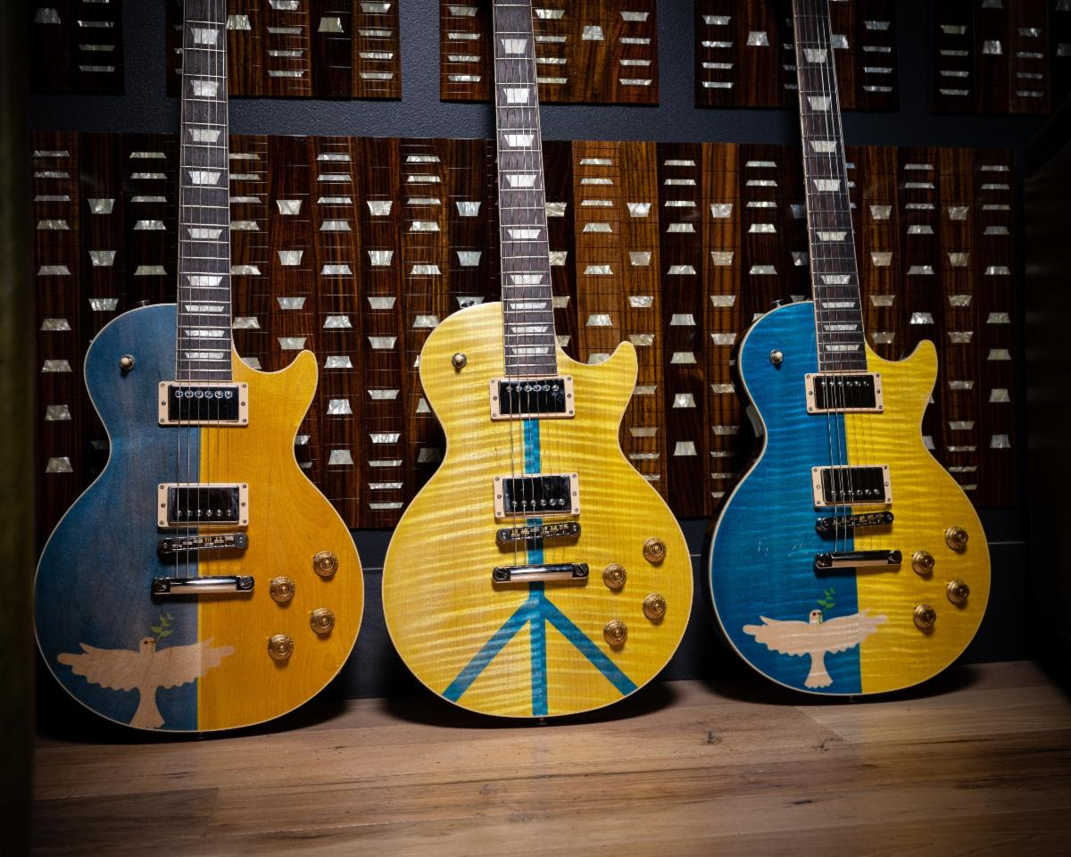I liutai Gibson hanno realizzato una serie limitata di quattro chitarre elettriche Guitars For Peace Les Paul Custom, che sfoggiano con orgoglio i colori blu e oro della bandiera ucraina.