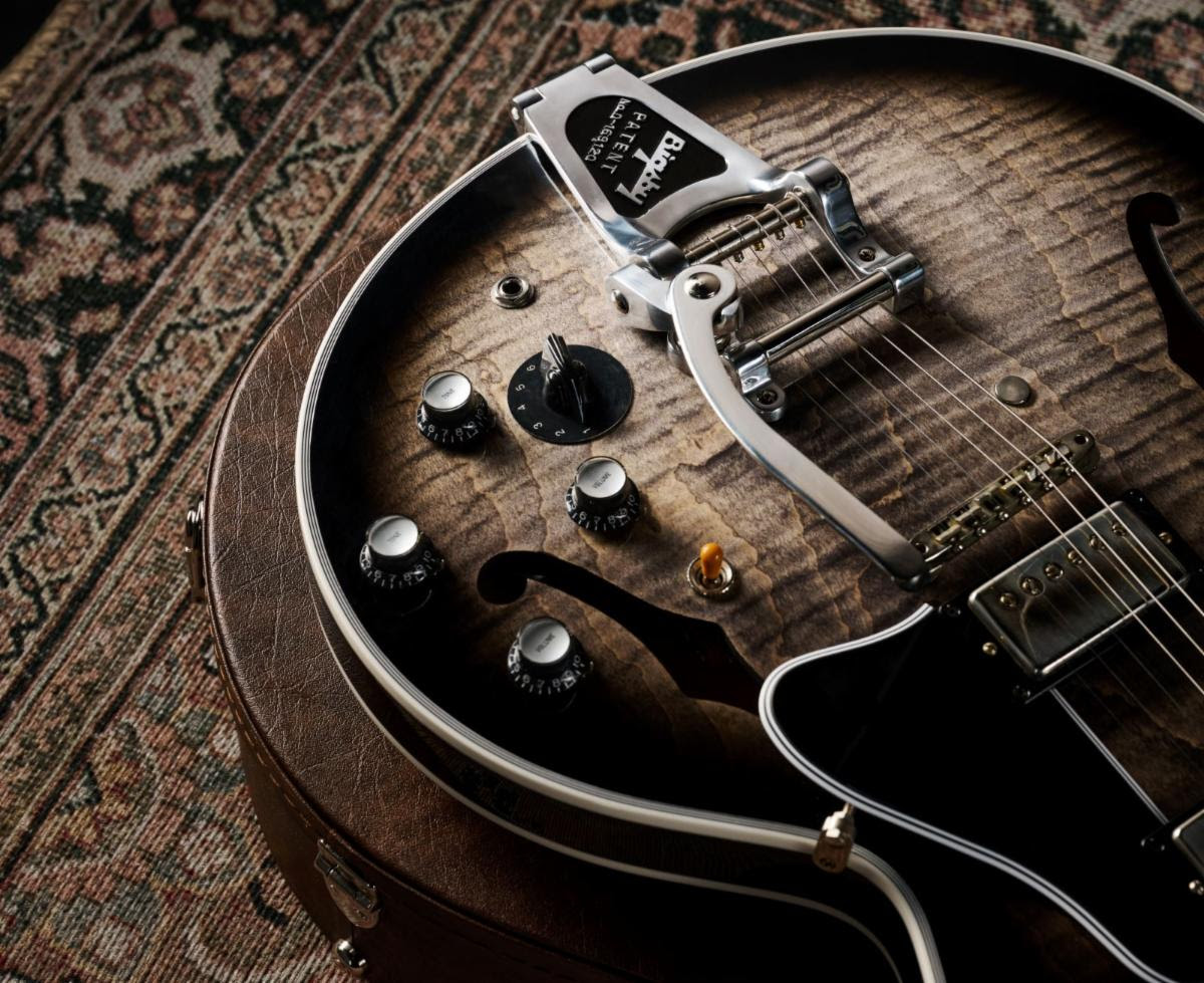 L’hardware è in VOS nickel, con ponte ABR‑1 Historic no‑wire e vibrato Bigsby B7. La finitura è Cobra Burst in versione VOS, che mette in evidenza il top figurato e rientra nelle colorazioni più scenografiche della linea ES contemporanea.