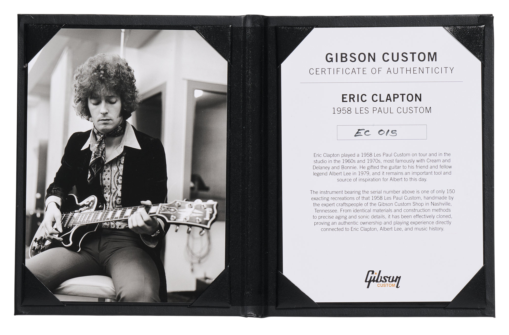 Gibson ha recentemente presentato una fedele riproduzione della Les Paul Custom del 1958 utilizzata da Eric Clapton durante la registrazione dell’album Disraeli Gears dei Cream e poi in diversi tour, incluso quello con Delaney & Bonnie, e a fasi alterne per tutto il resto degli anni ’60 e ’70.