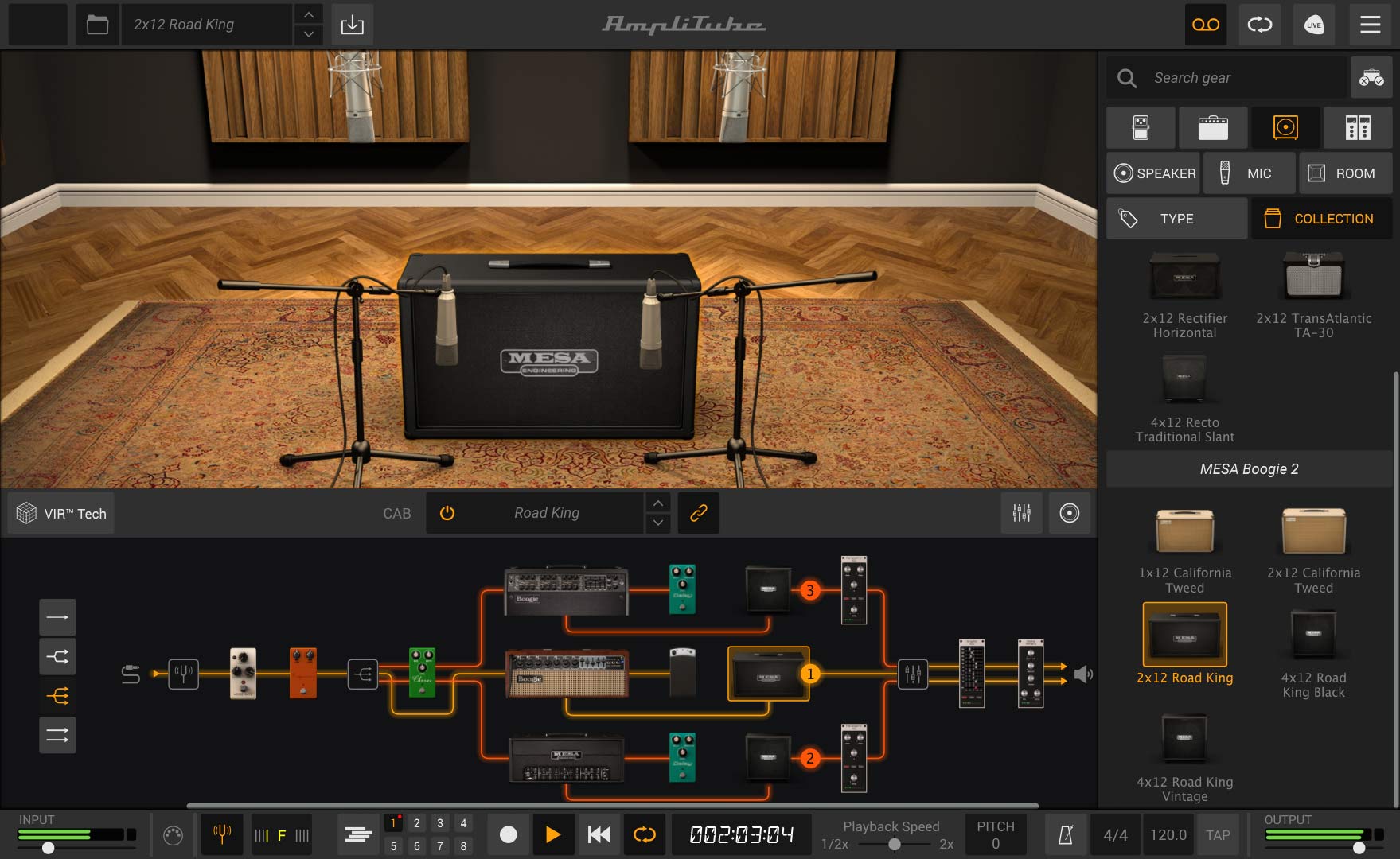 Seguito della prima apprezzata collezione, AmpliTube MESA/Boogie 2 beneficia della più aggiornata tecnologia di casa IK Multimedia, e in particolare dei sistemi di modellazione proprietari DIM e VIR utilizzati per l’ottenimento di una risposta il più fedele possibile agli ampli fisici presi a modello. L’esito del lavoro è stato ufficialmente certificato dal team di ricerca e svilluppo di MESA/Boogie.