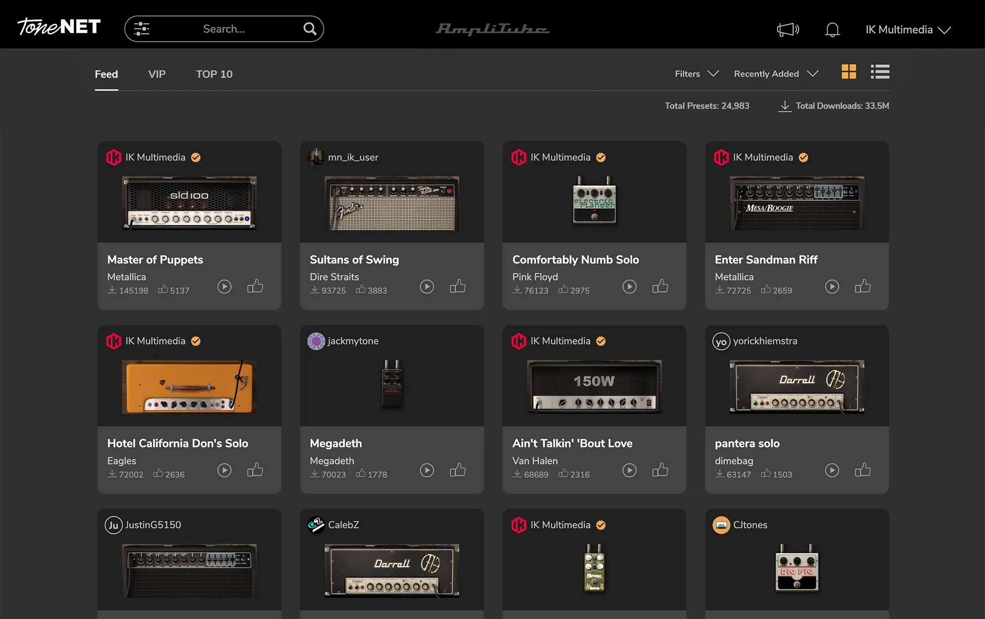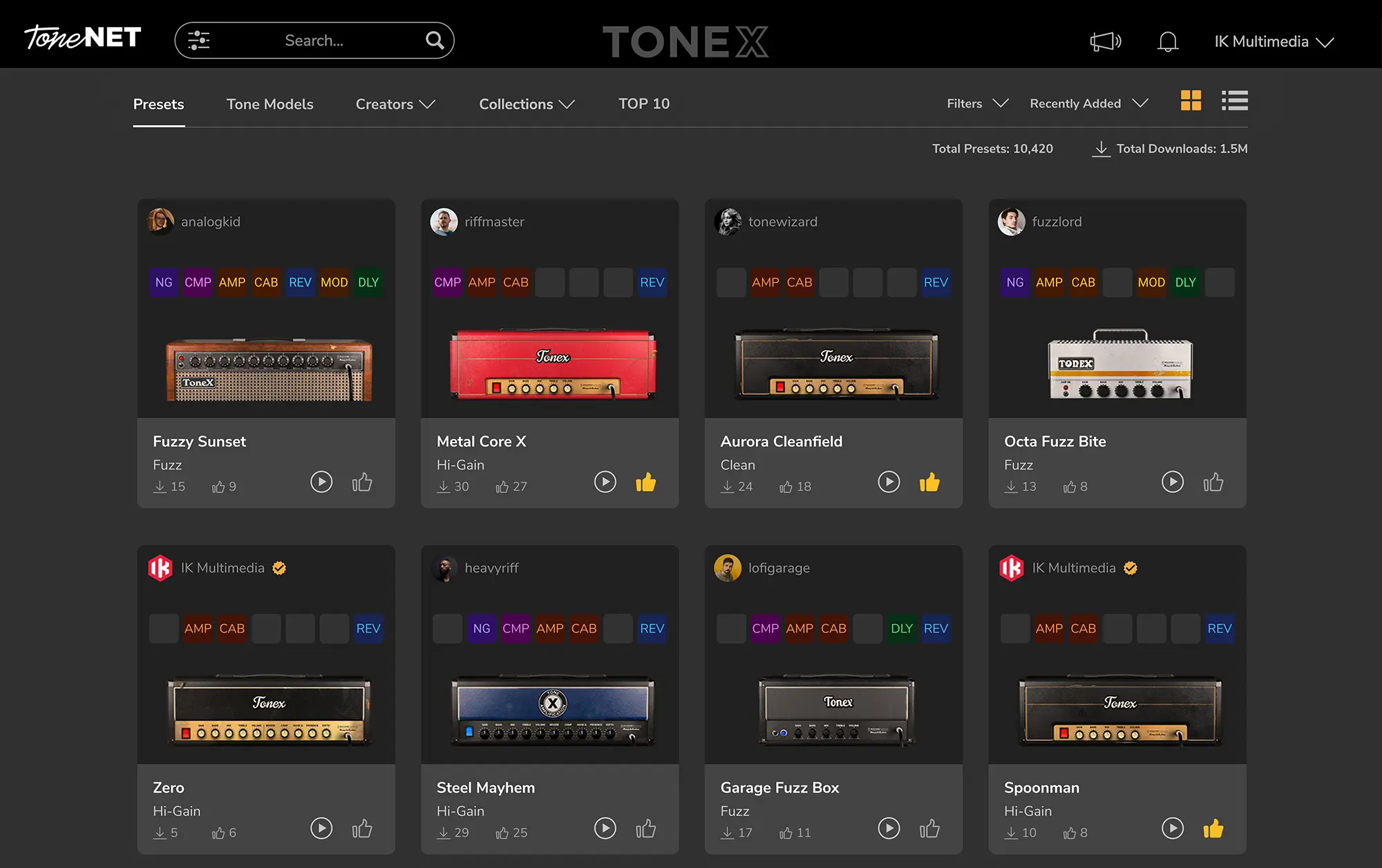 ToneNET conta già centinaia di preset disponibili, con nuovi contenuti aggiunti quotidianamente dalla community, da IK Multimedia stessa e dai suoi Tone Partners ufficiali.