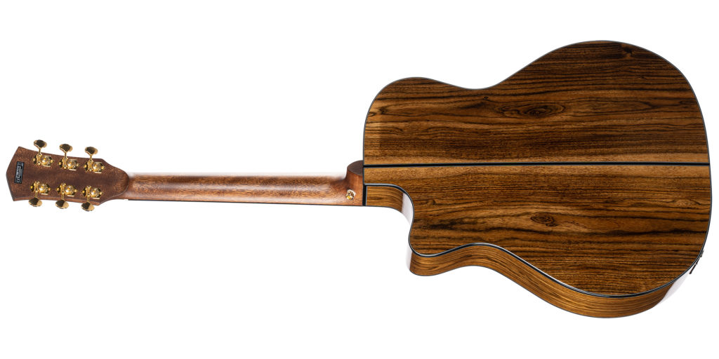 Il primo strumento che nominiamo è la chitarra Gold-OC6 Bocote, già presente in catalogo ma che ha ricevuto uno speciale upgrade per il legno di fondo e fasce, cioé l’essenza esotica chiamata Bocote.
