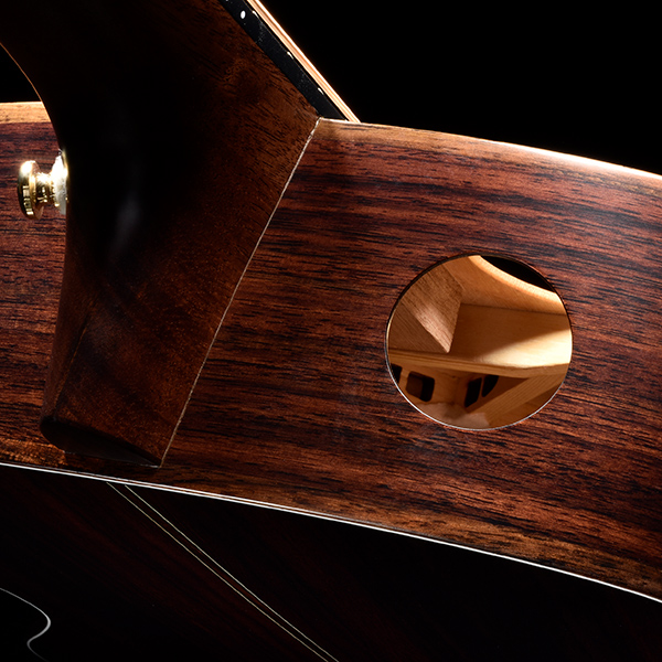 Un ergonomico armrest arricchisce la dotazione degli strumenti di fascia più alta, completati da corde D’Addario, trasduttori ed elettronica Fishman, capotasti, sellette e meccaniche Graphtech.
