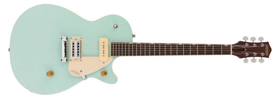 Prezzi imbattibili per le Streamliner e tre colori diversi per la G2215-P90 Junior Jet Club, presentata in Mint Metallic, Sahara Metallic e Single Barrel Stain. Sulla cassa un Broad’Tron™ BT-2S al ponte e un P90 al manico.