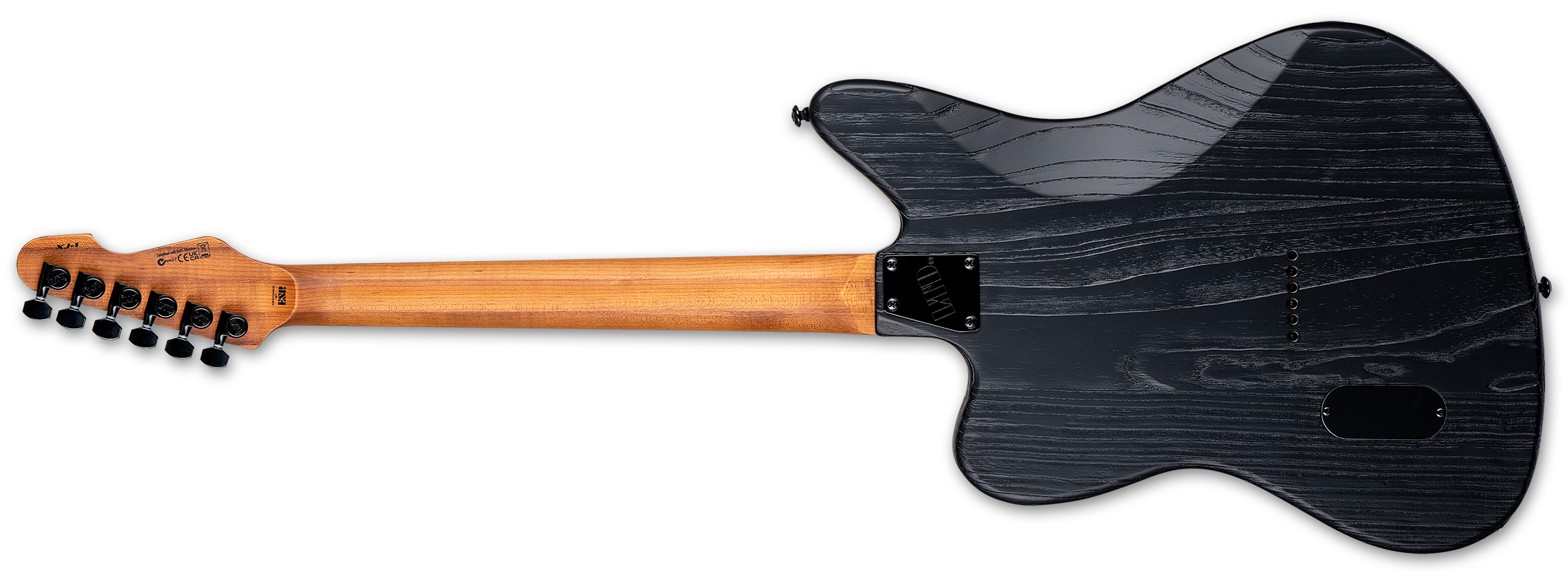 La XJ-1 HT ha il corpo in frassino con finitura “Black Blast” che dona alla superficie un effetto sabbiato con venature a vista.