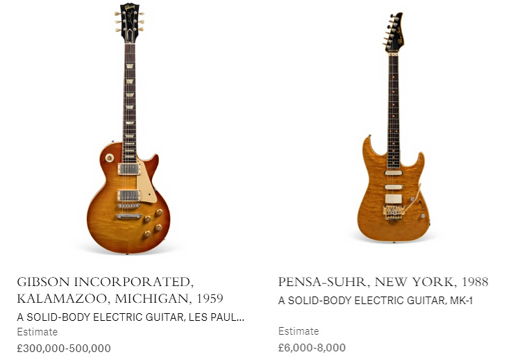 Tra i lotti c’è una Gibson Les Paul del 1959 con una finitura sunburst, conosciuta come il “Santo Graal delle chitarre elettriche”, stimata tra £300.000 e £500.000.