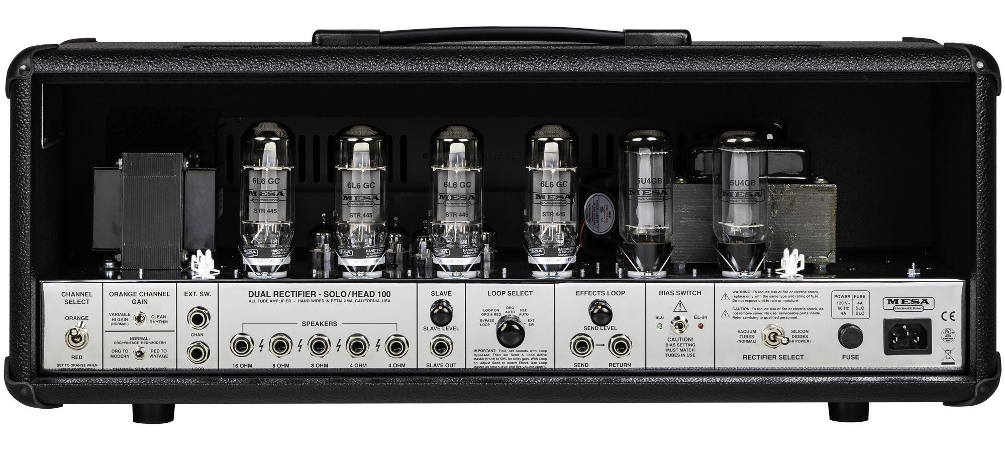 La testata Dual Rectifier Solo Head è stata un punto di svolta per la musica rock e metal, introducendo un nuovo paradigma nel campo dell’high-gain grazie a un suono unico: medie frequenze scavate, bassi profondi e alti ricchi di armoniche, il tutto costruito su un vero e proprio muro di potenza valvolare.