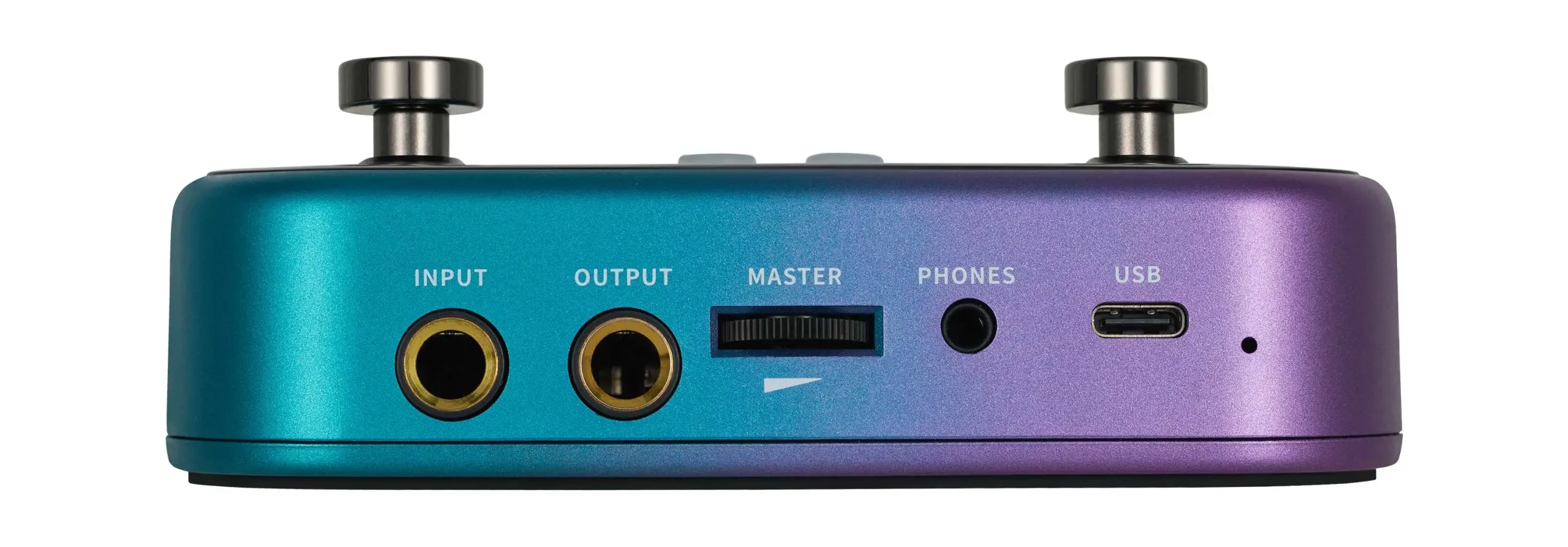 Con un peso di soli 190 grammi e una lunghezza di 12 cm, il Prime M1 è estremamente portatile. Il design minimalista presenta due footswitch multifunzione che permettono di navigare tra i preset, controllare il looper, attivare l’accordatore e gestire la drum machine. Un display LED fornisce informazioni essenziali sullo stato del dispositivo, inclusi Bluetooth, carica della batteria e assegnazione dei footswitch.
