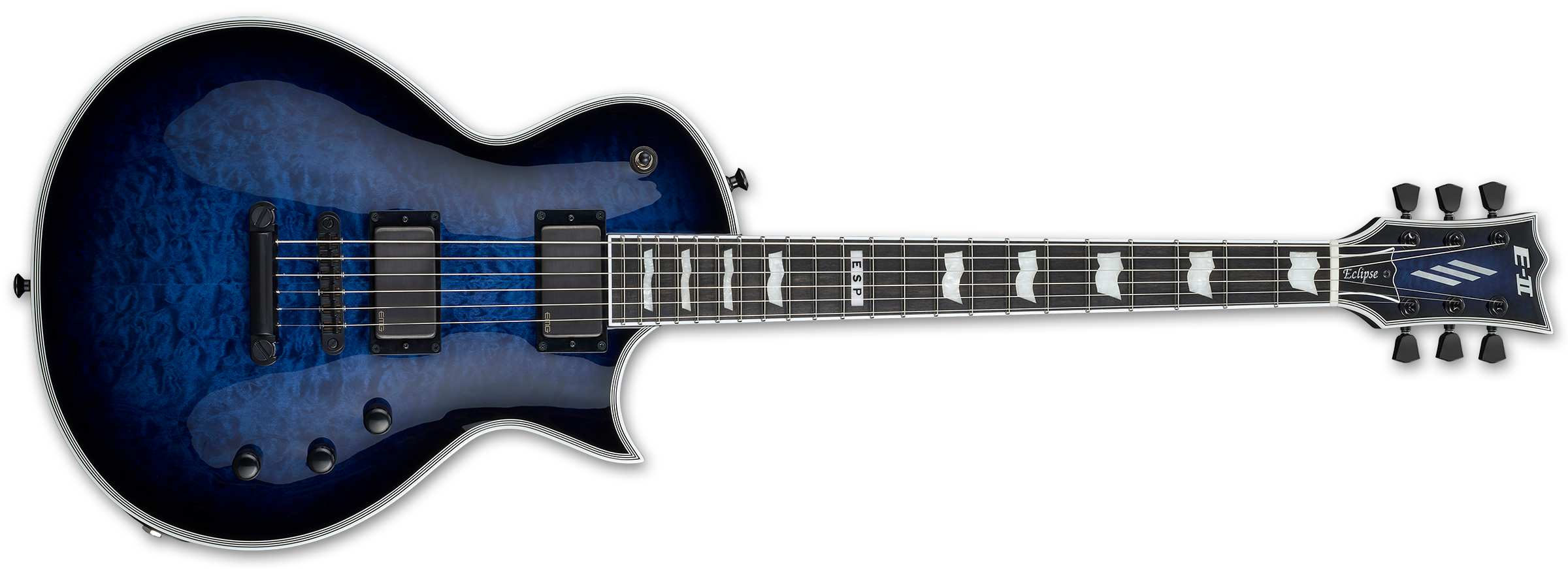 Infine, l’esclusiva finitura ESP preferita da molti è tornata con la E-II Eclipse Reindeer Blue, con un top in acero quilted e binding multistrato, insieme a un set di pickup EMG 60 e EMG 81 in Brushed Black Chrome.