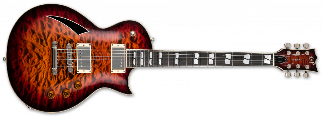 La ESP USA Eclipse FR aggiunge un ponte Original Floyd Rose alla classica chitarra single-cutaway. È costruita con un corpo in mogano, con top opzionali in acero fiammato o acero quilted e un’ampia varietà di finiture traslucide o satinate che permettono anche di evidenziare le venature del legno. C