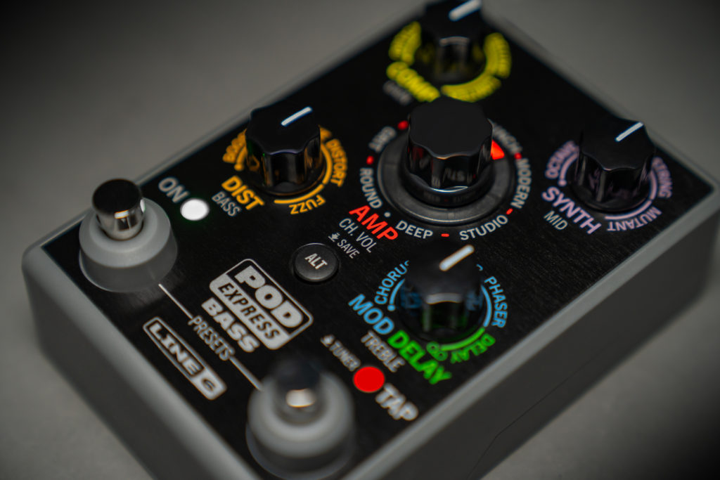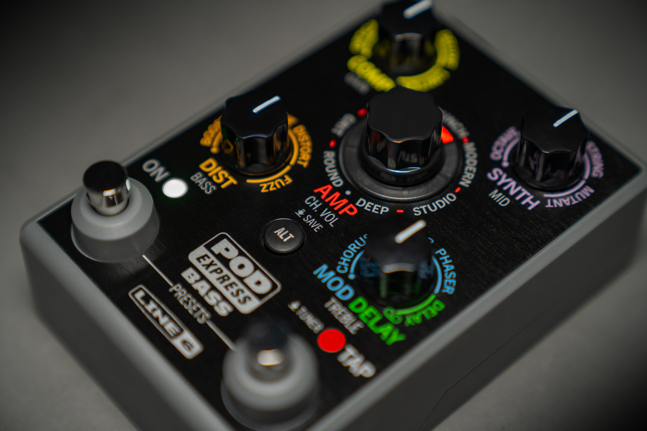 Il POD Express Bass è specificamente progettato per soddisfare le esigenze dei bassisti. Offre anch’esso 7 amplificatori, 7 cabinet e 17 effetti, tra cui distorsioni, compressori, synth, modulazioni e delay, oltre a un looper.