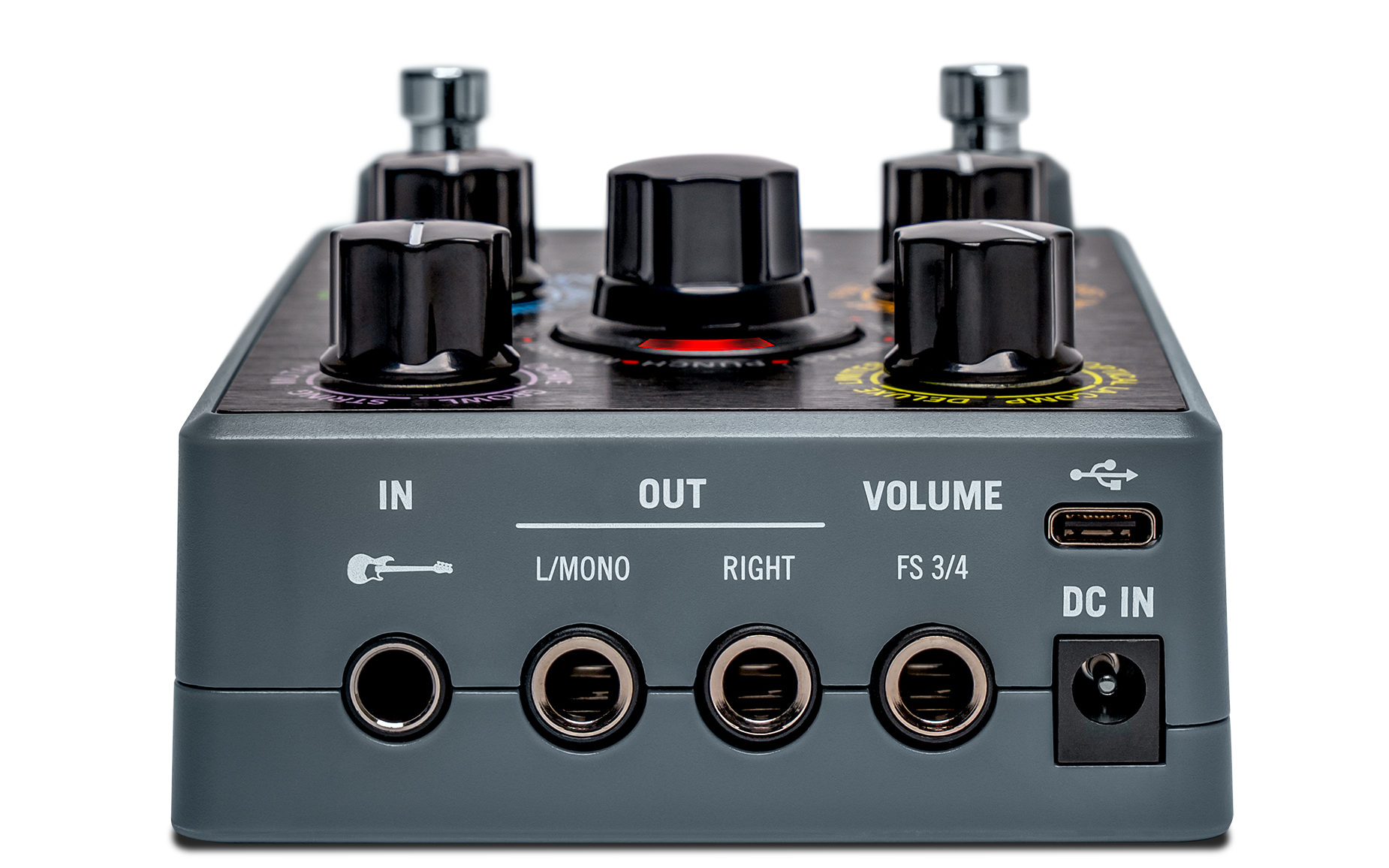 Il pedale è progettato per essere estremamente user-friendly, con un anello LED multicolore che indica varie funzioni dei parametri e un encoder per l’amplificatore che facilita la selezione e la modifica dei suoni.