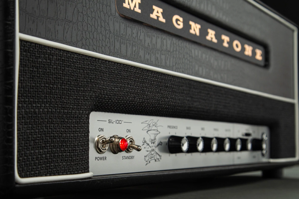 Il Magnatone Slash Signature SL-100 Head Blackout Edition è stato concepito per soddisfare le esigenze del famoso chitarrista: “Sono diventato un grande fan del suono Magnatone ed è stato un onore contribuire alla progettazione di un amplificatore da 100 watt con loro. Penso che abbiamo unito il suonio e la chiarezza Magnatone con una certa potenza e un ottimo crunch. La combinazione è aggressiva e dolce allo stesso tempo, è davvero fantastica“, ha dichiarato Slash.