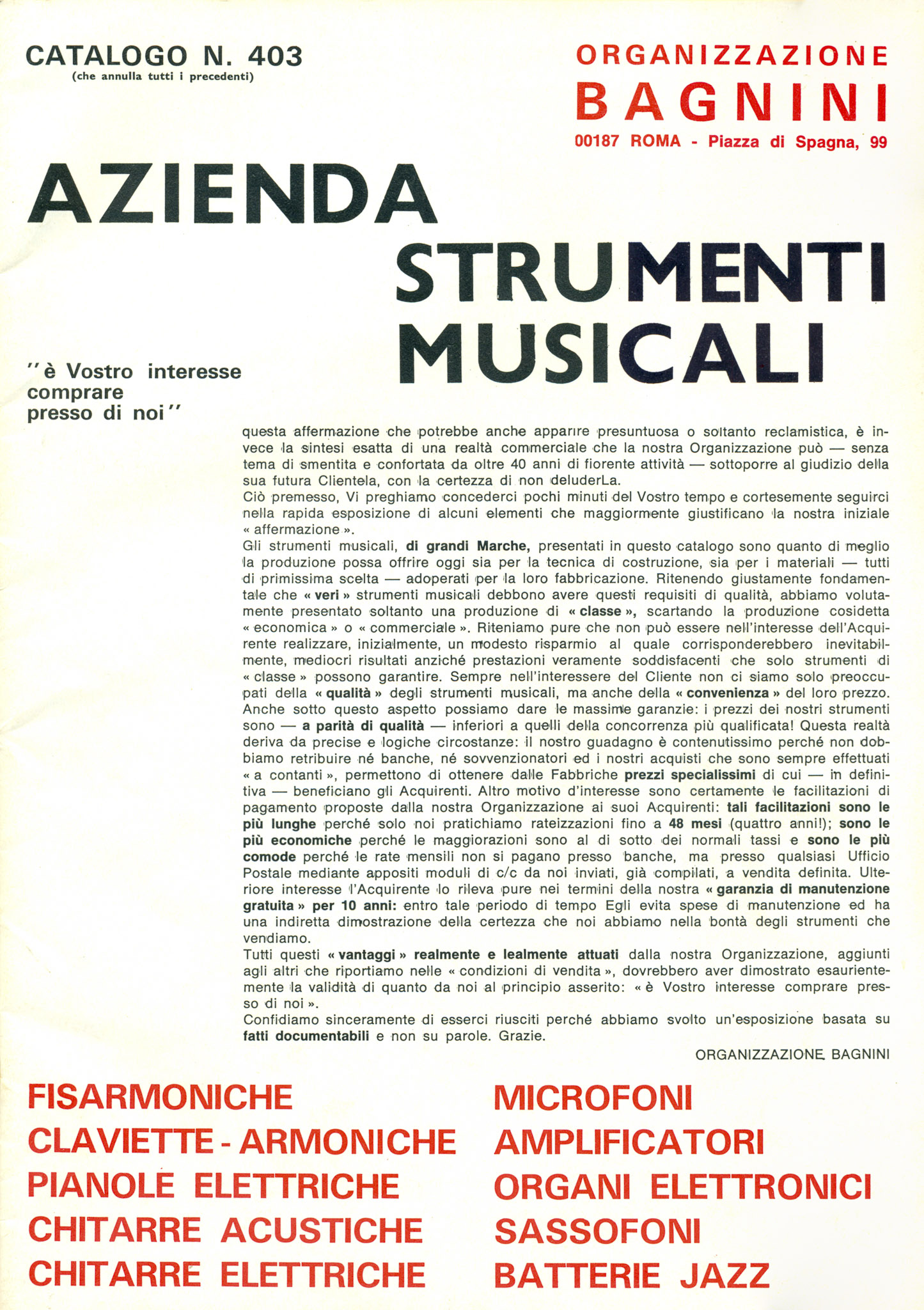 Vendevano orologi, macchine fotografiche, proiettori e non mancavano le fisarmoniche. Ovviamente era prevista la rateizzazione in 24 comode rate senza anticipo, spedizione ovunque. Per chi viveva a Roma, la Bagnini aveva una sede centrale in Piazza di Spagna e una succursale all’Esquilino.
