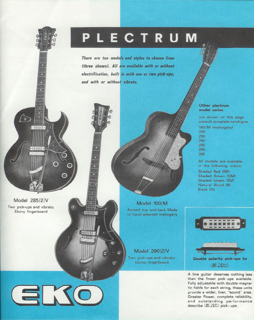 La novità principale fu il modello 290, praticamente una Epiphone Casino in salsa italica che diventò uno dei modelli più famosi e longevi della Eko e meglio conosciuta con il nome che assunse nel 1967 ispirandosi alle muscle car americane: la Barracuda.