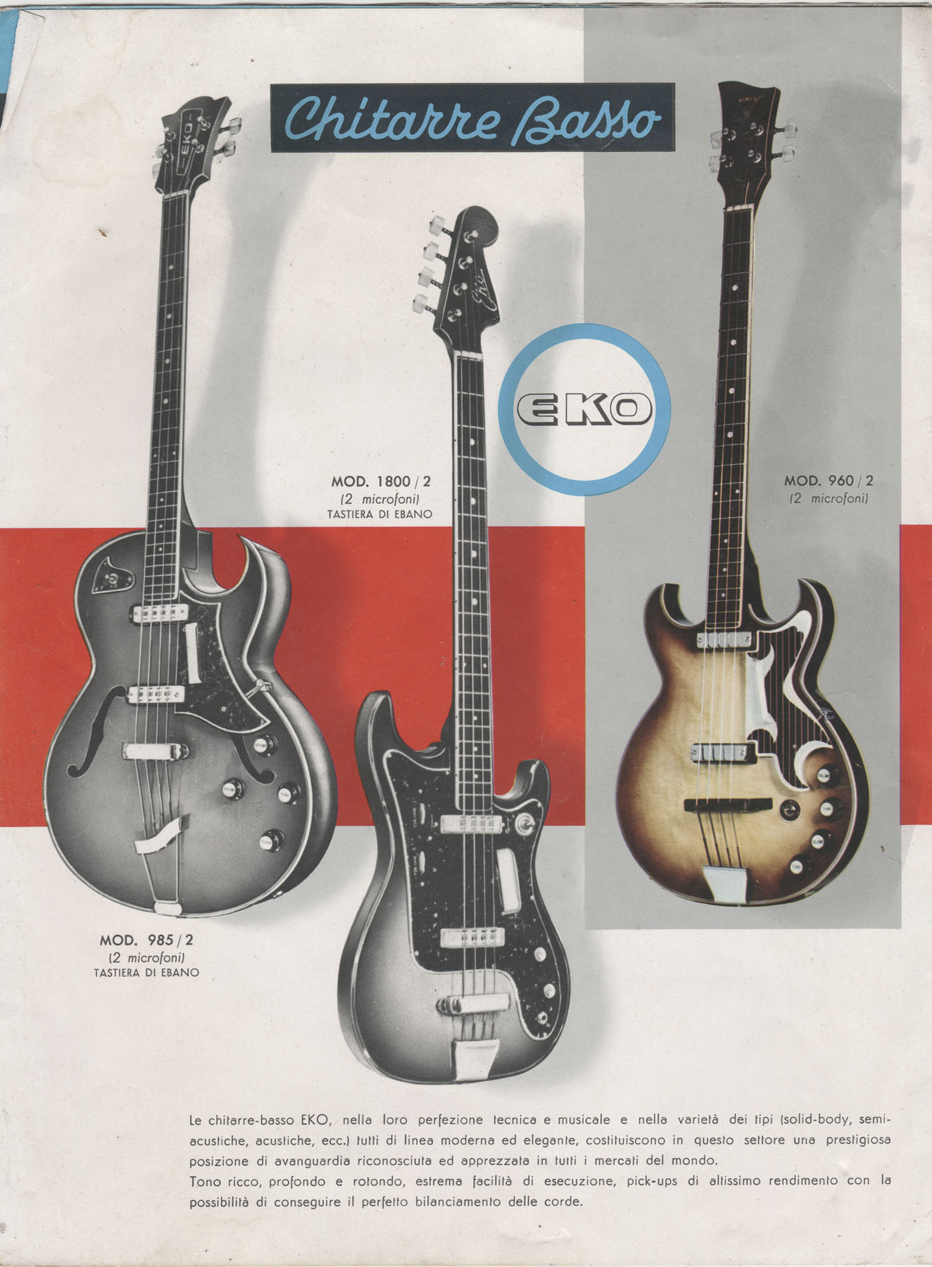 La Eko fu sicuramente il più famoso dei marchi di strumenti musicali italiani. Fondata tra il 1959 e il 1960 da Oliviero Pigini, grazie alla enorme richiesta di chitarre da parte del mercato internazionale, l’azienda di Recanati diventò presto una delle fabbriche più grandi del mondo e le sue chitarre erano distribuite in tutto il mondo.