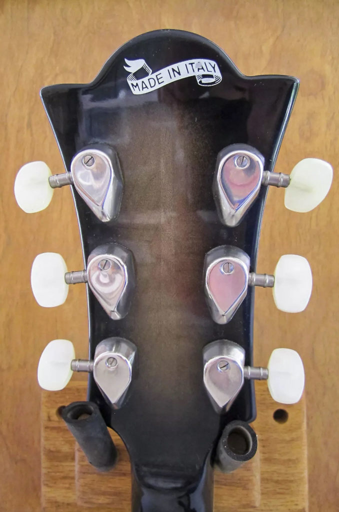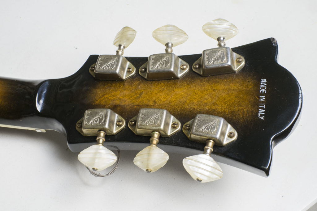 All’epoca non si buttava niente e probabilmente facevano parte di un campionario arrivato dalla Germania che fu montato su uno strumento di serie. Oggi le sole chiavette possono valere più della chitarra: se ne trovate una con queste meccaniche, non lasciatevela scappare.
