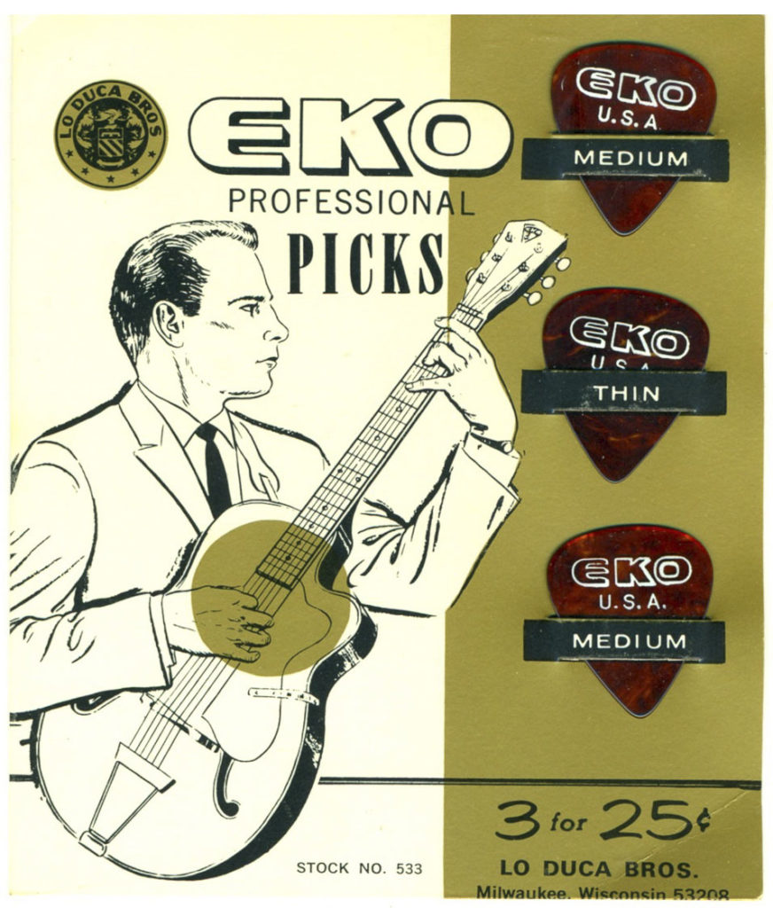 Qualche suggerimento dovette arrivare da due musicisti della scena di Las Vegas che i Lo Duca usavano per dimostrare le chitarre nelle fiere: Nick Esposito e Dick Eliot, proprio lui, quel signore dinoccolato che appare in modo stilizzato su gran parte del materiale pubblicitario dell’epoca.