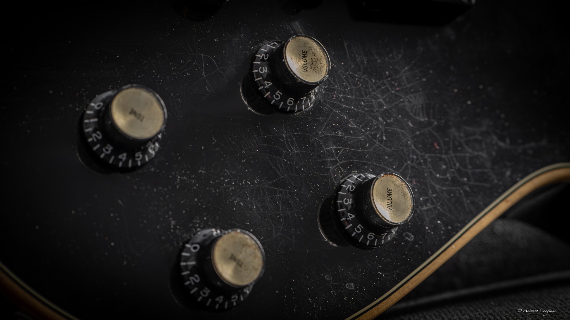 Parliamo quindi di un modello Kenai con ponte Tune o Matic, di colore nero ma con il binding natural, corpo in mogano e con un carved top in acero di tipo T3, che nella classificazione interna di Knaggs è quello meno figurato. La scelta (confermatami da Peter Wolf stesso) è stata per via della finitura nera, che in questo caso riporta anche un leggero relic unito a un effetto di vernice “crancked” come se la chitarra fosse stata chiusa in una custodia per diversi anni.
