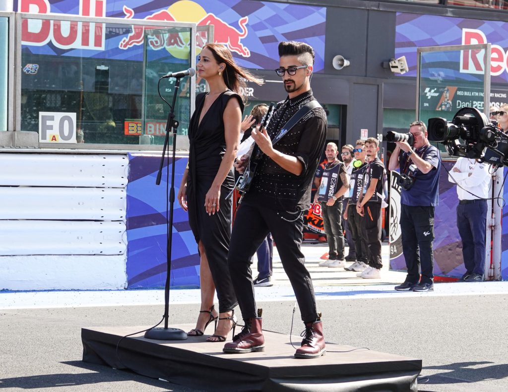 Insieme alla cantante Roberta Saccani e armato della sua oramai ben nota “chitarra-casco” sviluppata con il liutaio Mauro Gaudenzi, Maceroni ha aperto il Gran Premio di San Marino e della Riviera a Misano Adriatico, suonando un doppio inno: