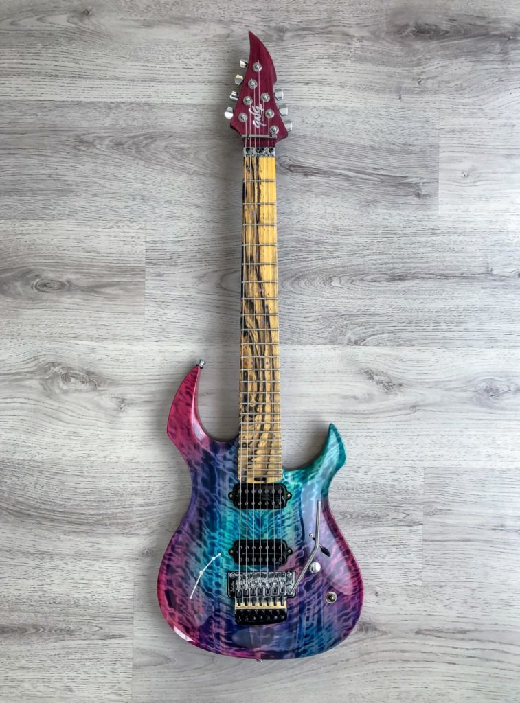 Si tratta di una liuteria italo/svizzera – visto che Giulio è italiano ma costruisce i suoi strumenti da oramai 6 anni in Svizzera (il motto è infatti swissmade by Italian master) – che oramai si è fatta conoscere in vari Paesi del mondo, specializzata in particolare negli strumenti dedicati ai generi più heavy, ma non solo, perché, come vedremo nell’intervista che segue, alcuni modelli non hanno solo l’originalità delle forme, ma possono essere considerati quasi come dei veri e propri strumenti musicali a sé stanti.