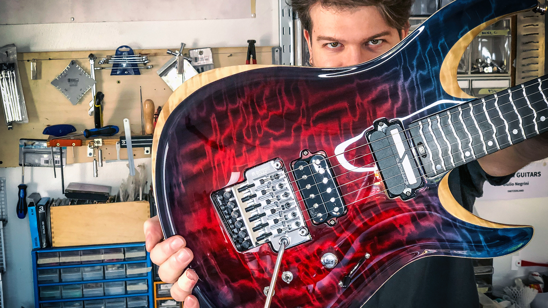 In questo caso, però, incontriamo un liutaio, Giulio Negrini, che con le sue creature marchiate GNG (Giulio Negrini Guitars) va in una direzione completamente personale, dalla prima all’ultima curva (o retta) dei propri disegni/progetti.