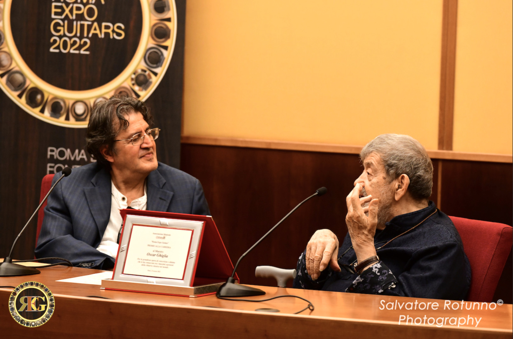 Fra tutte le esperienze, quella che porterò sempre nel cuore è la premiazione alla carriera di Oscar Ghiglia e ancor più le due ore successive, in cui il Maestro, con la pacatezza di un nonno, ha ripercorso la storia della chitarra classica del ’900, citando nomi che fino ad allora avevo solo letto nei libri.