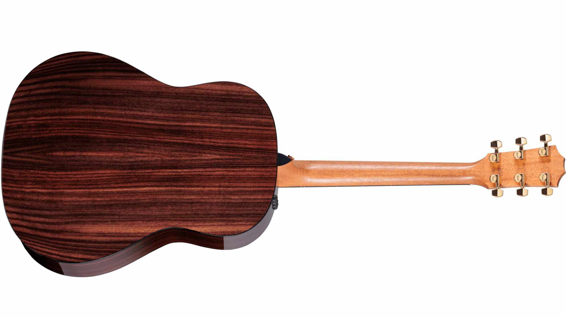 Il top è in abete torrefatto massiccio, mentre fondo e fasce sono in palissandro indiano. Troviamo in questo caso un tipo di catenatura C-Class con Relief Rout. Quest’ultimo, anch’esso un brevetto Taylor, è una tecnica costruttiva che ha lo scopo, tramite una scalanatura lungo i bordi, di generare una maggiore flessibilità senza sacrificare l’integrità strutturale.