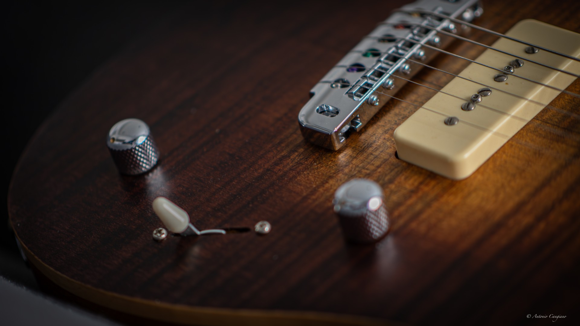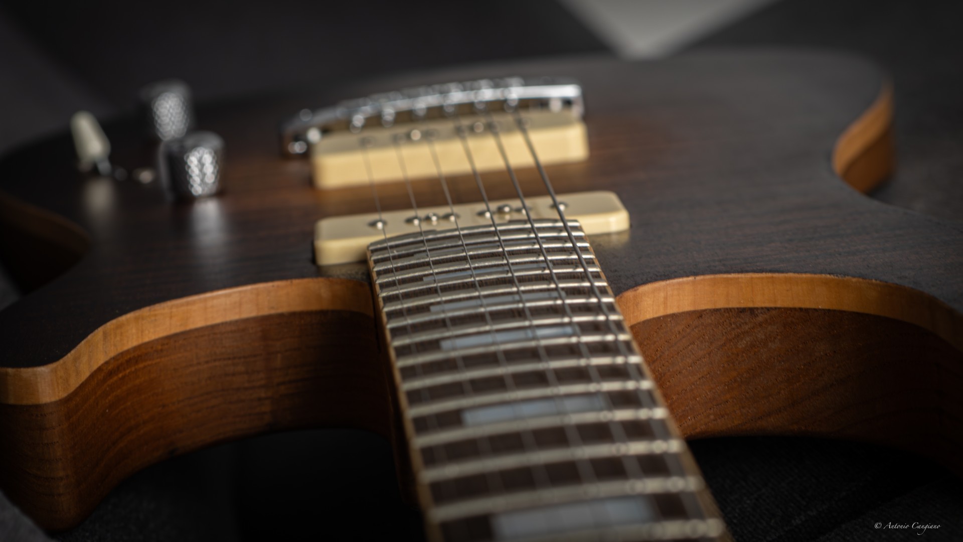 Sulle essenze utilizzate, parliamo di un caso che non è mai capitato, sia in termini di scelta dei legni veri e propri (castagno e ciliegio per body e manico) e soprattutto con una stagionatura e un origine di questo tipo, l’unica cosa “normale” è praticamente il top in acero fiammato che è inserito sopra il body.