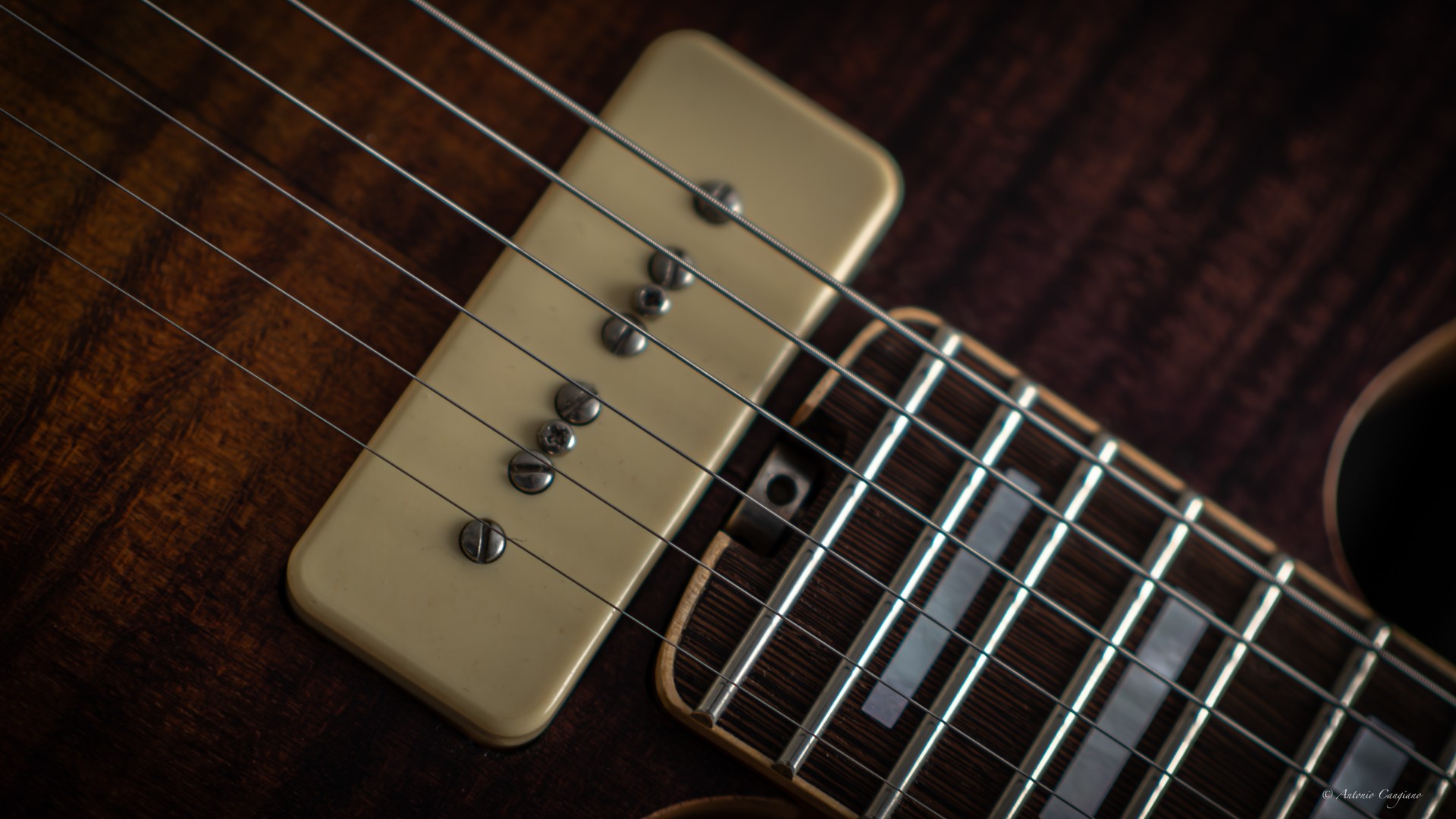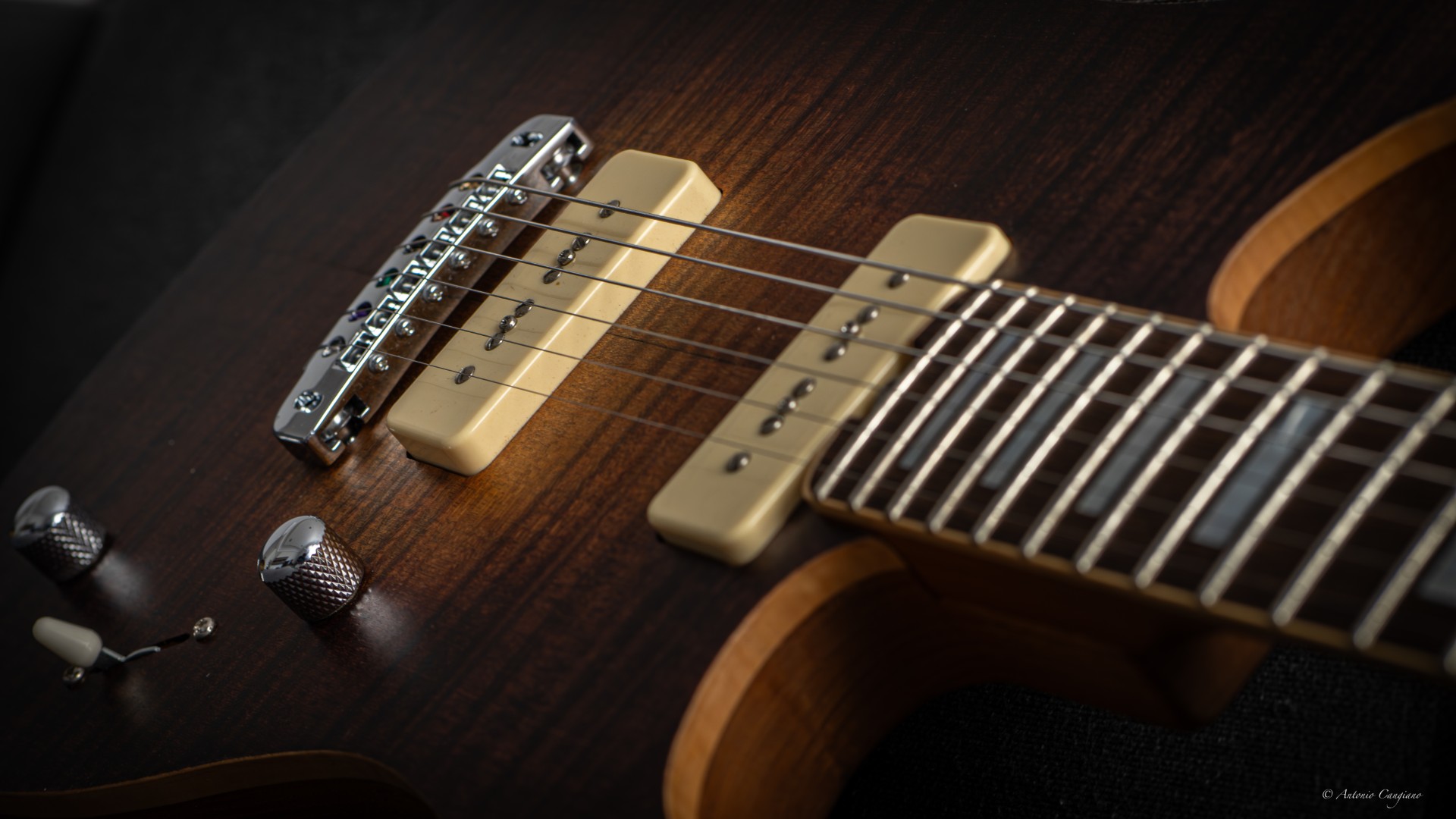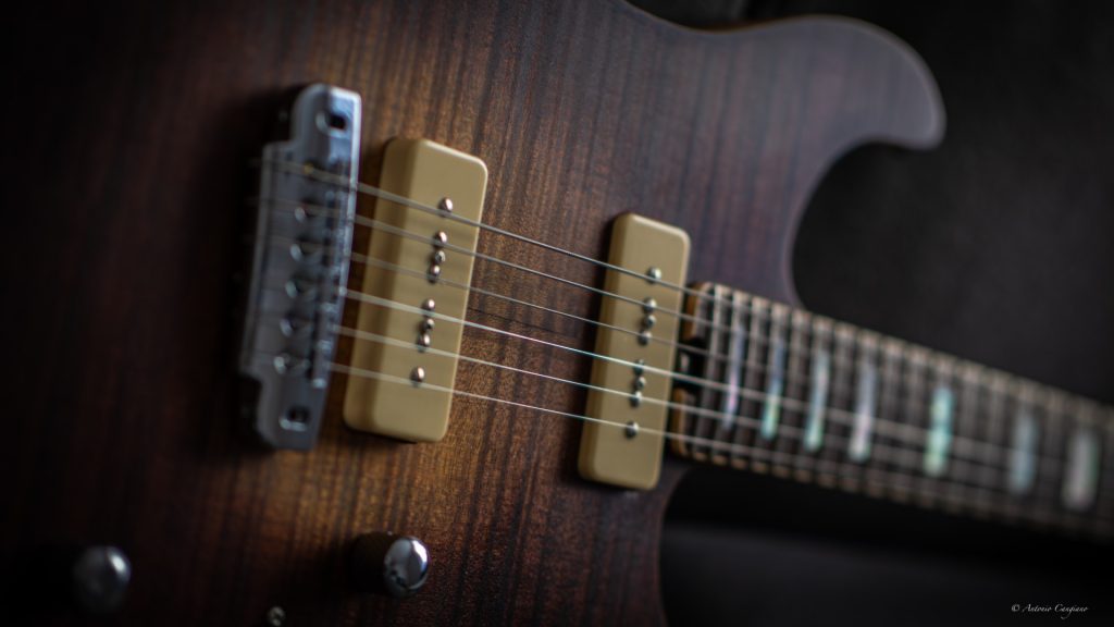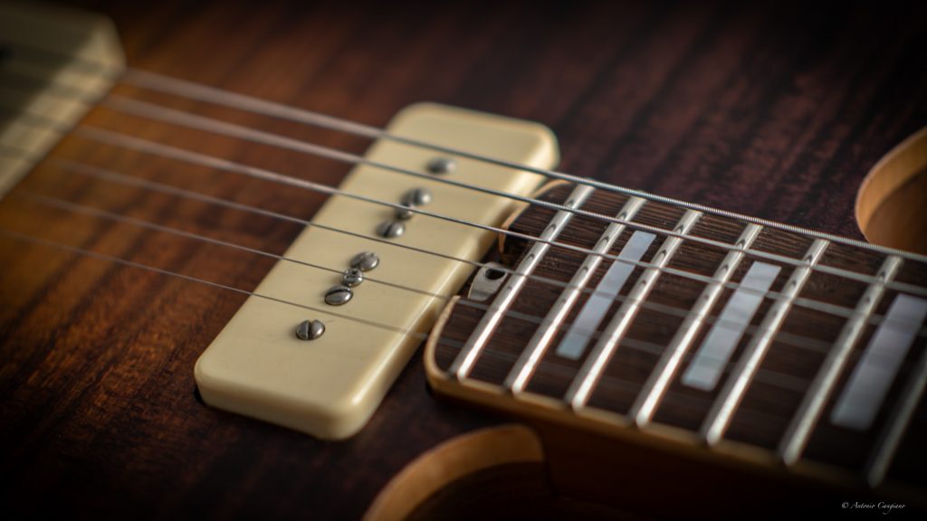 Di fondo tutto lo strumento suona abbastanza in avanti sul regime delle medio alte, nelle posizioni al ponte risulta abbastanza “scampanellante” come direbbe qualcuno; il comportamento è più dinamico e con un’uscita più grossa rispetto a qualche altro tipo di P90.