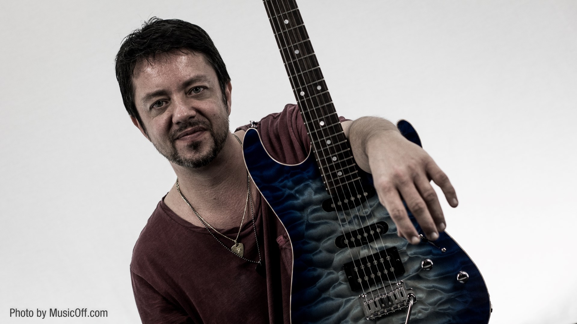 Lo ascoltiamo oggi grazie alle mani del bravissimo Francesco Savarese, amico e musicista professionista con cui collaboriamo felicemente da alcuni mesi. Francesco imbraccia per l’occasione la sua Schecter Sunset Custom Shop.