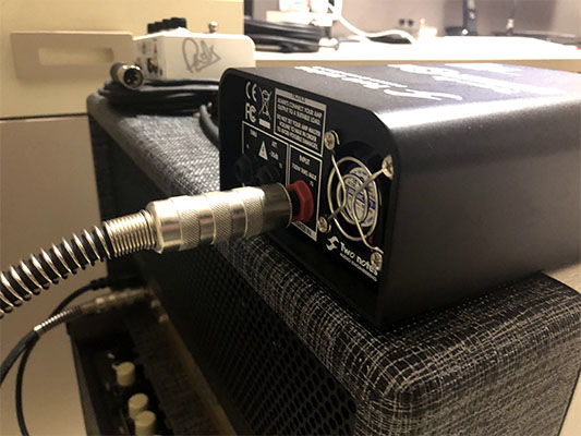 Dopo aver collegato la nostra chitarra (o basso) all’amplificatore, colleghiamo un cavo di potenza dall’uscita del finale, ossia quella che dovrebbe andare verso il nostro cono.