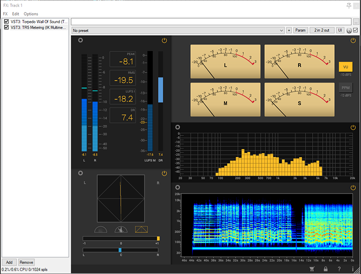 Per poter utilizzare il software dobbiamo (ovviamente) aprire una traccia nella nostra DAW, fatto questo dobbiamo aprire la catena di effetti della suddetta traccia (Insert) e selezionare Wall of Sound dai nostri plugin disponibili.