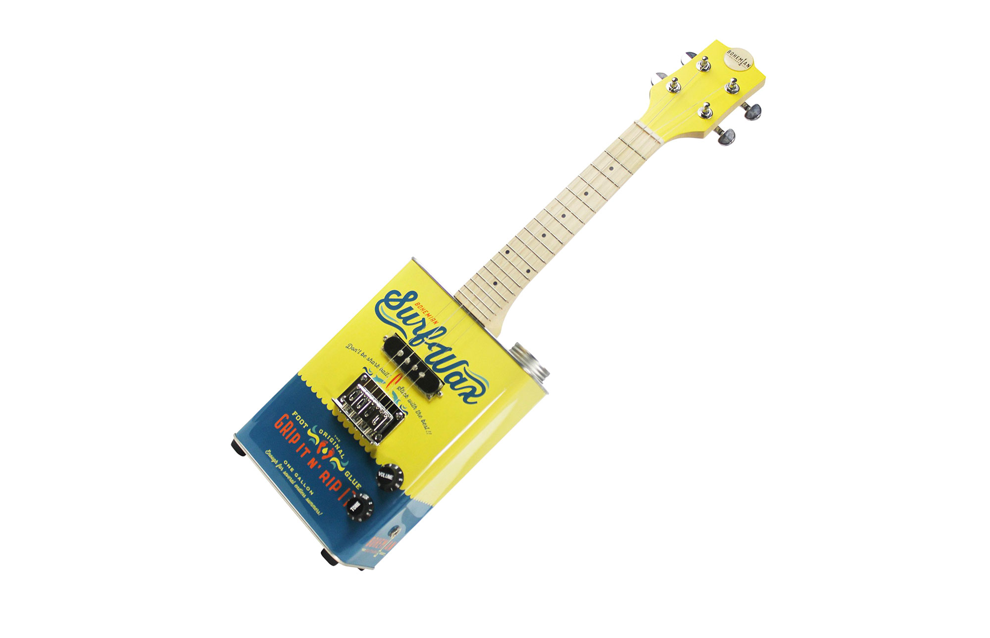 L’ukulele Bohemian Surf Wax ha lo stesso tipo di struttura riportata in scala, con cassa un po’ più piccola e manico in acero di lunghezza ridotta. Anche qui la paletta è verniciata in un colore che ricorda quelli della cassa. Il ponte è, invece, di tipo fisso in stile Fender con quattro sellette regolabili, mentre l’unico pickup è un single-coil a quattro poli.