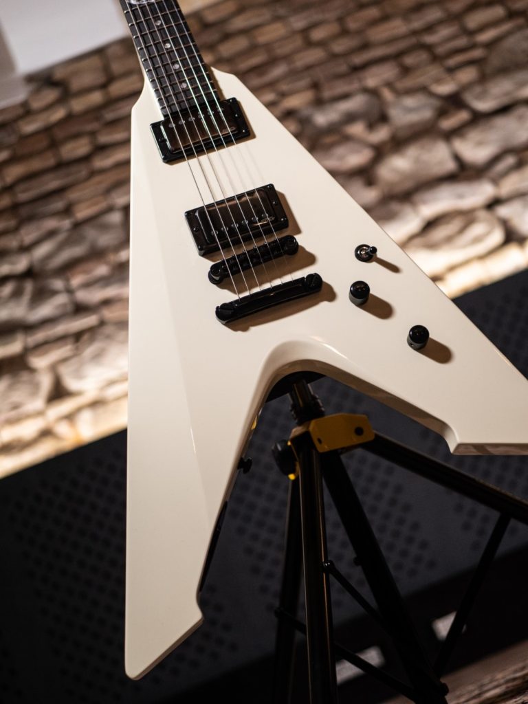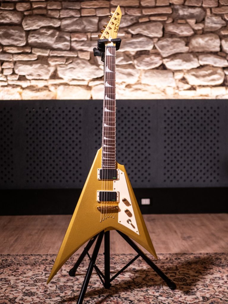 Le due chitarre in questione sono la “LTD JH Vulture OW” di James Hetfield e la “LTD KH-V MG” di Kirk Hammett. Ognuna di queste porta con sé un’eredità che, come sentirete, è assolutamente riconoscibile, quella dei musicisti che le hanno ispirate e che a loro volta sono stati ispirati dal suono per comporre gli storici brani dei Metallica.