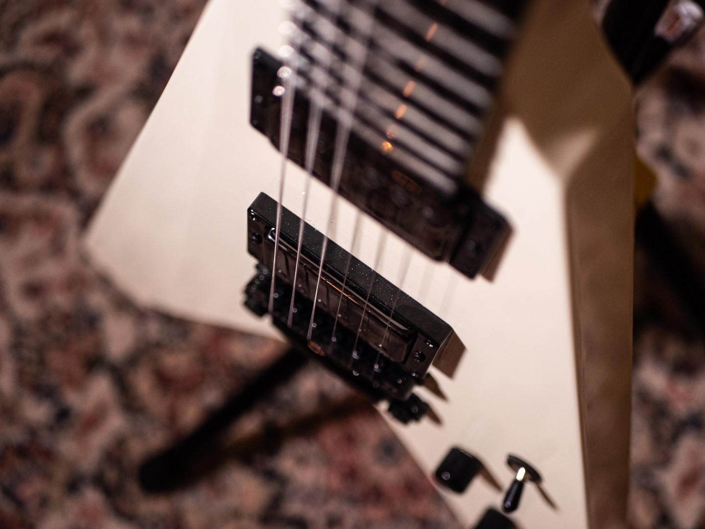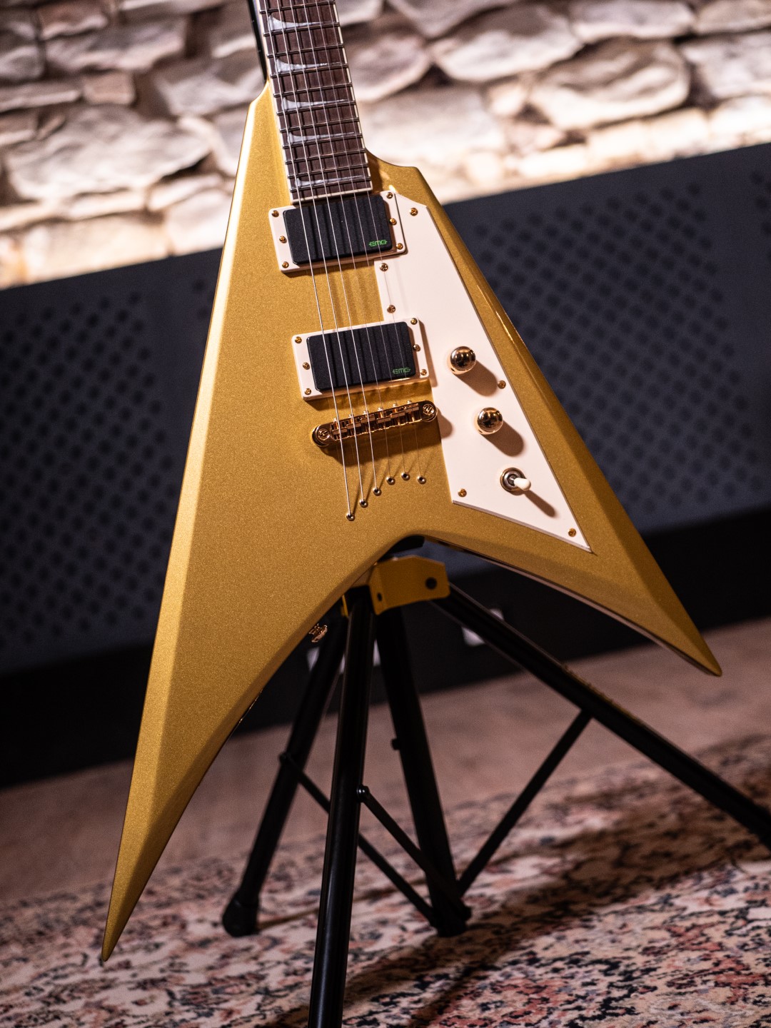 Questa chitarra vanta un corpo a forma di V in mogano con dettagli che richiamano il celebre logo dei Metallica. Dotata di un manico in mogano a tre pezzi e una tastiera in ebano Macassar con 22 tasti extra-jumbo, la Vulture offre un’ottima suonabilità.