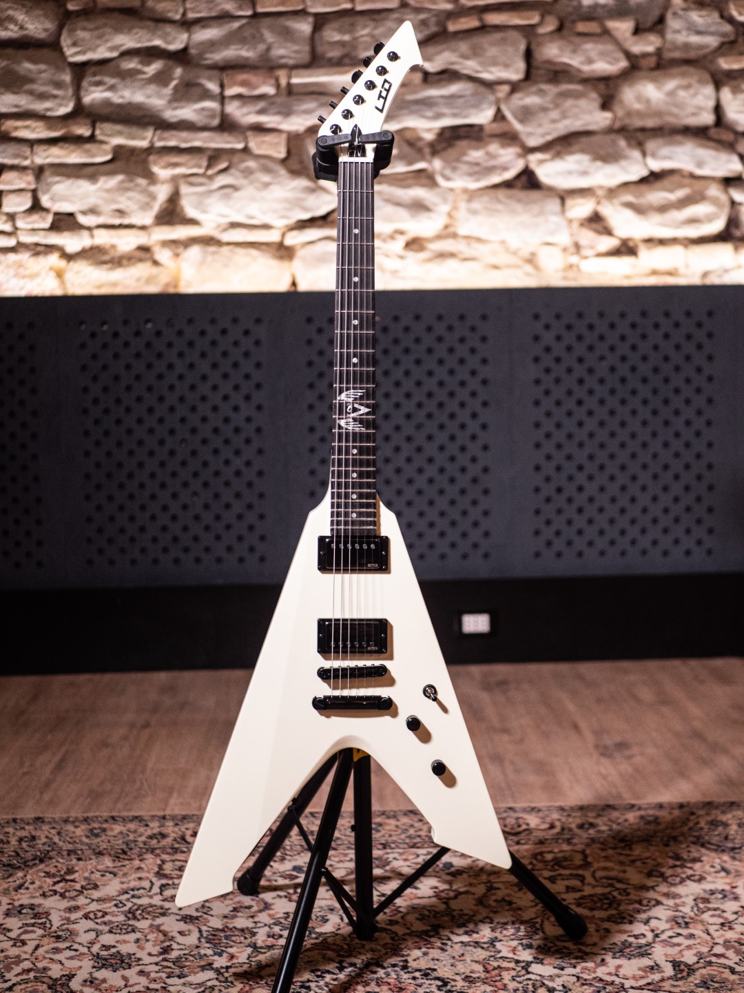 La LTD JH Vulture OW è la chitarra signature di James Hetfield, il carismatico frontman dei Metallica e uno dei chitarristi ritmici più influenti del Metal.