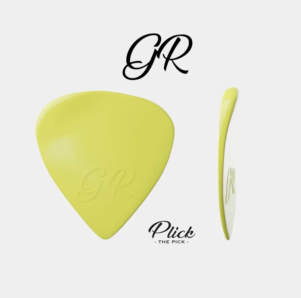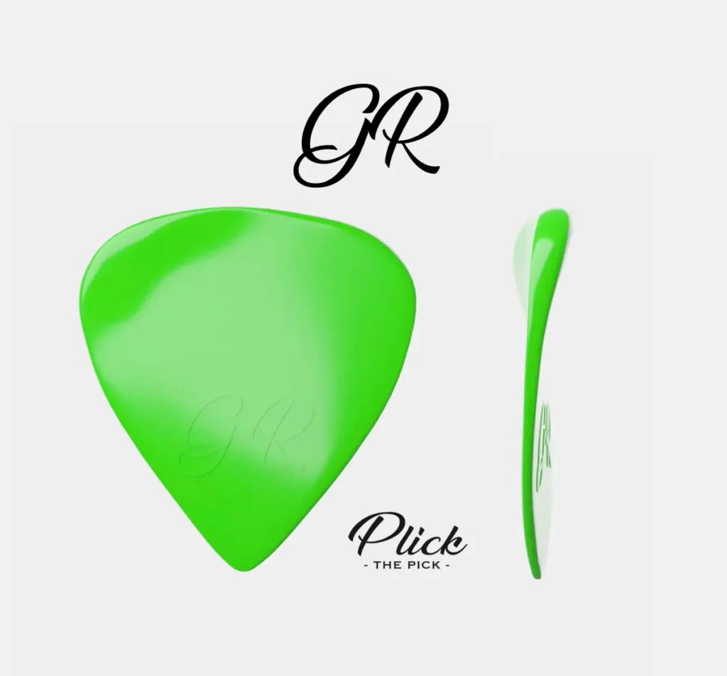 Quello verde, è il plettro che nasce invece per utilizzo ritmico, viene costruito in nylon e si presenta con una rigidità minore per permettere un migliore scorrimento tra le corde, un attacco più morbido e un suono a tutti gli effetti più equilibrato e omogeneo su tutto lo spettro.