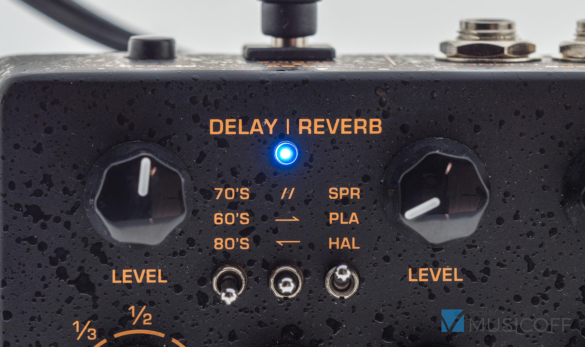 La sezione Delay contiene anche i riverberi e i due effetti possono essere usati insieme o separatamente sfruttando l’assegnazione del Ctrl switch o azzerando il livello, a seconda della modalità d’uso. In caso di uso combinato è possibile scegliere il routing anteponendo l’uno o l’altro effetto o mettendoli in parallelo.