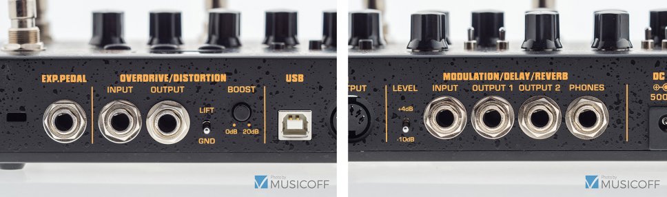 Avendo a disposizione input e output separati per le due sezioni, infatti, è possibile ad esempio andare dritti nell’input dell’amplificatore con Drive e Distorsione, collegando invece gli effetti di modulazione e ritardo all’FX loop. In alternativa, si possono mantenere le due sezioni in serie, inserendo a piacere anche i propri pedali esterni. Elasticità massima.