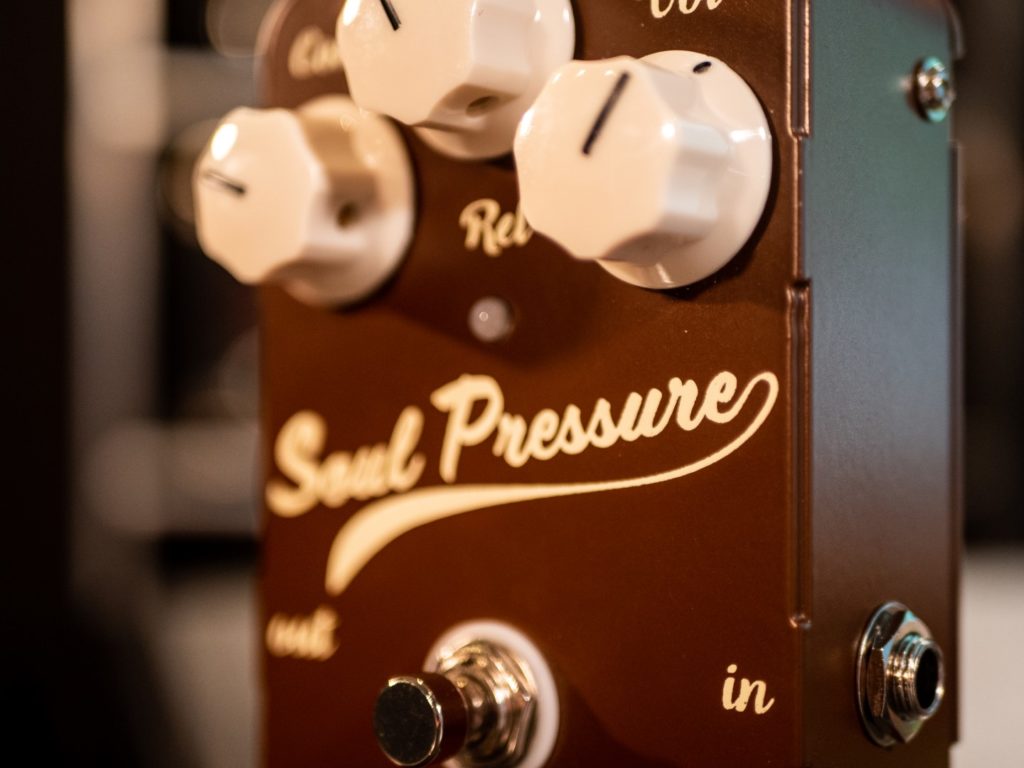 Pur facendo “glue”, il Soul Pressure mantiene una certa dinamica, segno che il circuito è stato studiato per avere una risposta molto musicale, quindi con tempi di attacco non velocissimi come ad esempio un compressore FET, ma più lenti, calibrati sul tipo di transiente della chitarra.