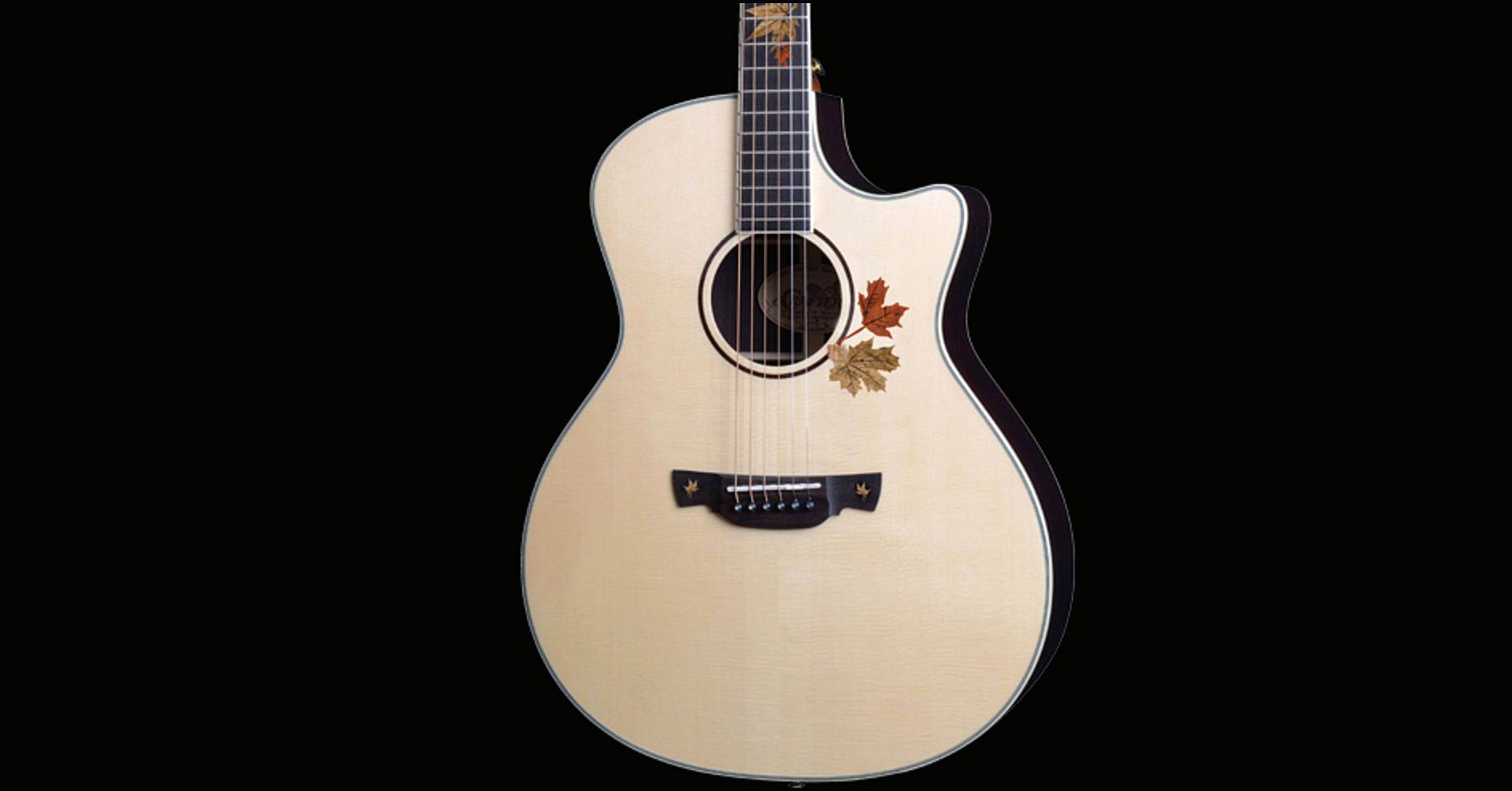 Un certo senso di “calore” è trasmesso anche trasversalmente dall’ampia presenza di intarsi in legno a sottolineare il motivo caratterizzante delle “foglie d’autunno” (AL = Autumn Leaves). La stessa rosetta della buca è in sobrio legno e solo il filetto a contorno del top e i cerchietti sulla testa dei bridge-pin sono in colorato abalone.