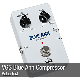 Salve MusicOffili, in questo video test ascoltiamo il compressore della serie di effetti a pedale del marchio tedesco VGS, il Blue Ann, dotato del controllo di gain e di un utile "hiss reduction" per ridurre al minimo il noise di fondo che potrebbe manifestarsi man mano che si sale con il livello di compressione. True