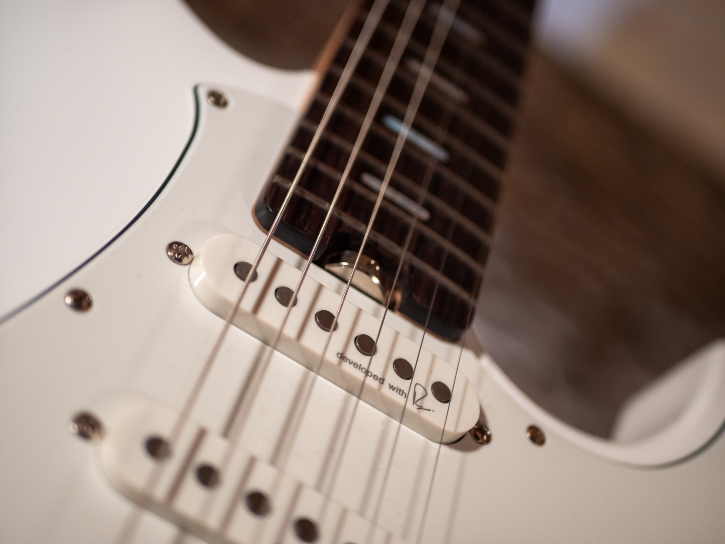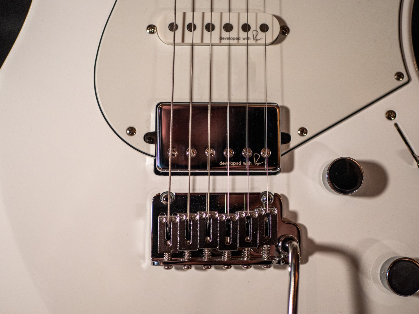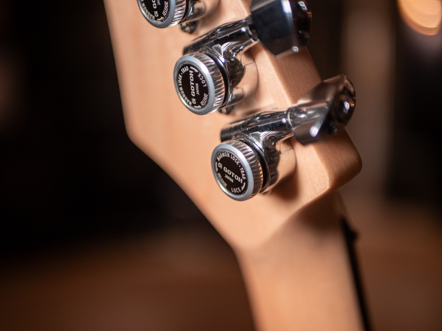 Si aggiunge il manico in acero a forma di “C” sottile, tasti in acciaio inossidabile e hardware premium, incluse le meccaniche autobloccanti Gotoh e ponti tremolo a 2 pivot.