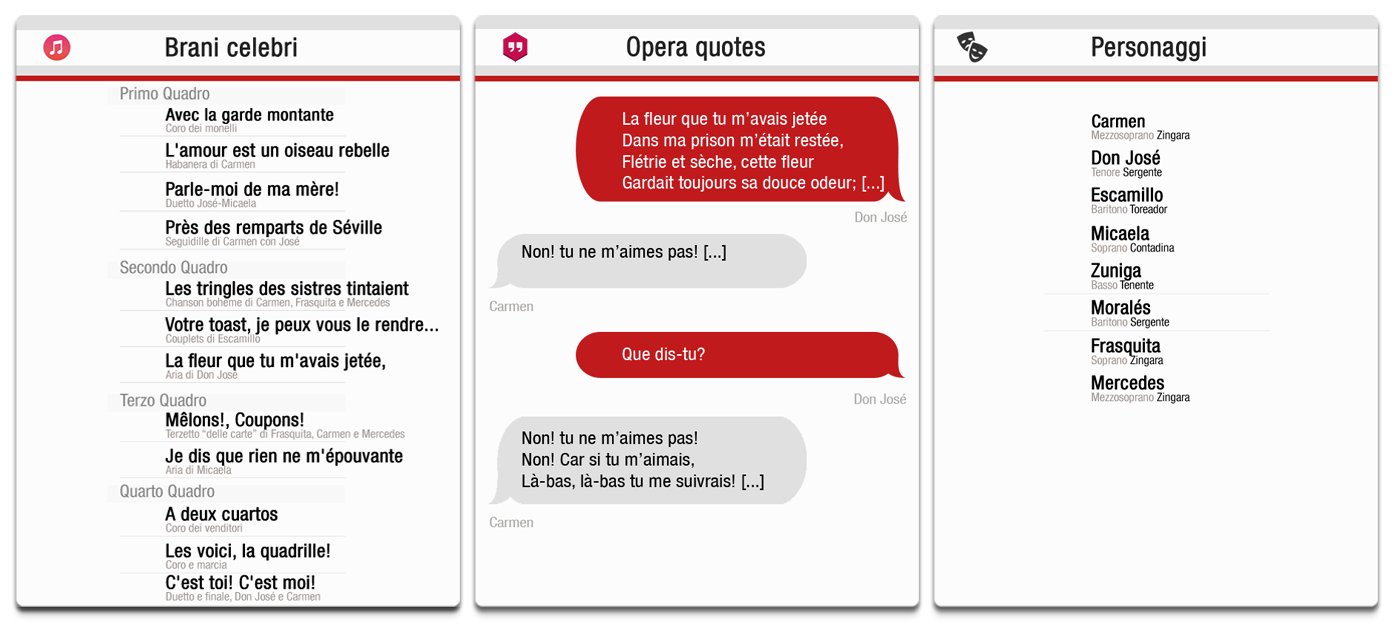 (1) Buon esempio di questa grande dote è proprio il tessuto musicale creato per José, personaggio più votato fra tutti alla varietà d’espressione, il quale nel corso di tutta l’opera ripete raramente un tema o una melodia. Altro punto di rilievo è sicuramente l’economia musicale, grande abilità del compositore francese, capace di non apporre mai una nota di troppo in virtù di una chiarezza e cooperazione degli strumenti con pochi pari.